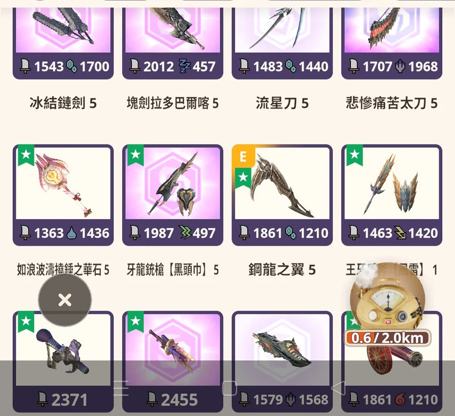 多把不同類型滿級武器