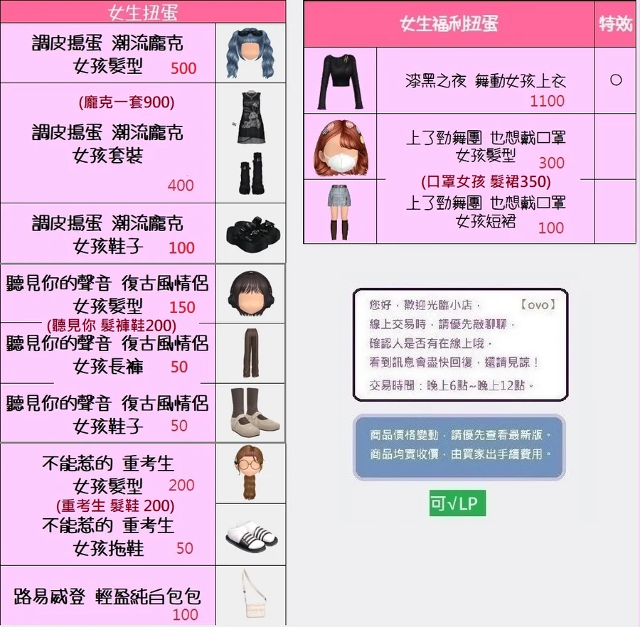 此評分僅供道具、遊戲幣、商城商品、送禮類別交易參考。