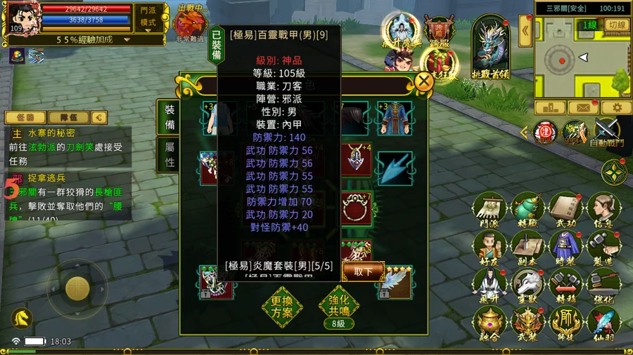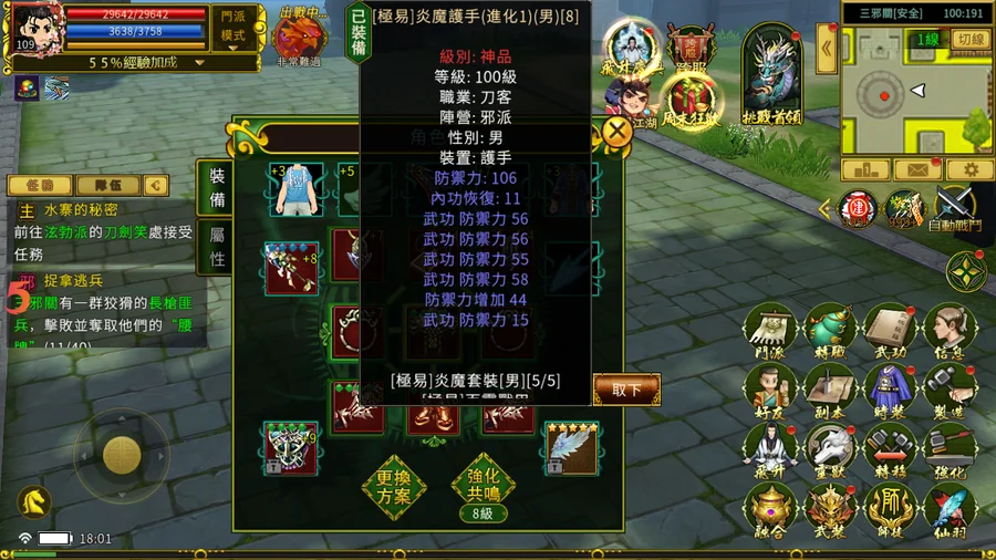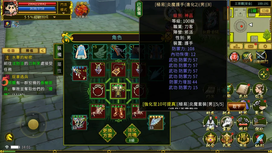 100裝備5件+8,內甲+9如圖,不含刀,飾品