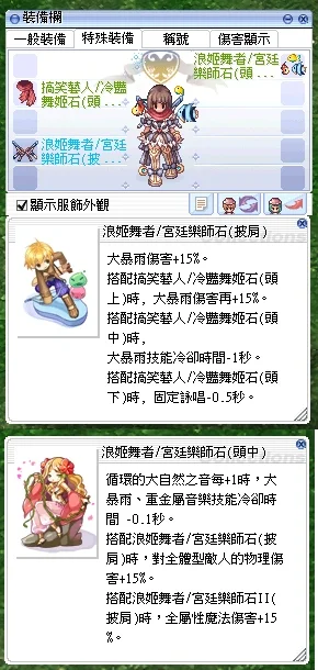 浪姬舞者/宮廷樂師石1.0服飾4件組(固定詠唱減少0.5秒)