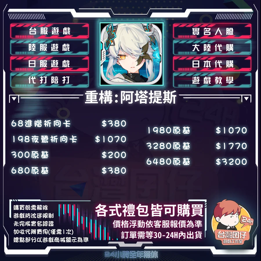 1.因商品成本+手續費+代付服務費,所以遊戲價格與代儲價格會有些差異。