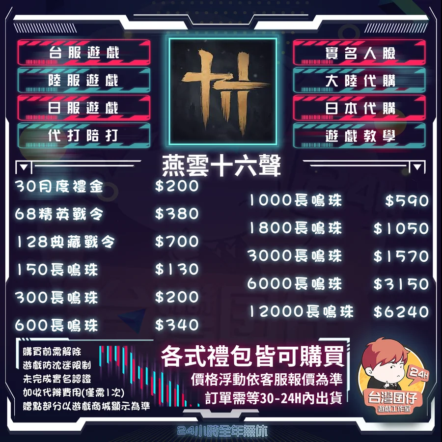 6️台灣囝仔台陸手遊代儲純粹為協助代儲服務,僅收取服務費,無賺取額外差價。