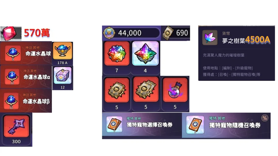 PVP幣4.4萬、星辰17.8萬、αβ水晶球32個