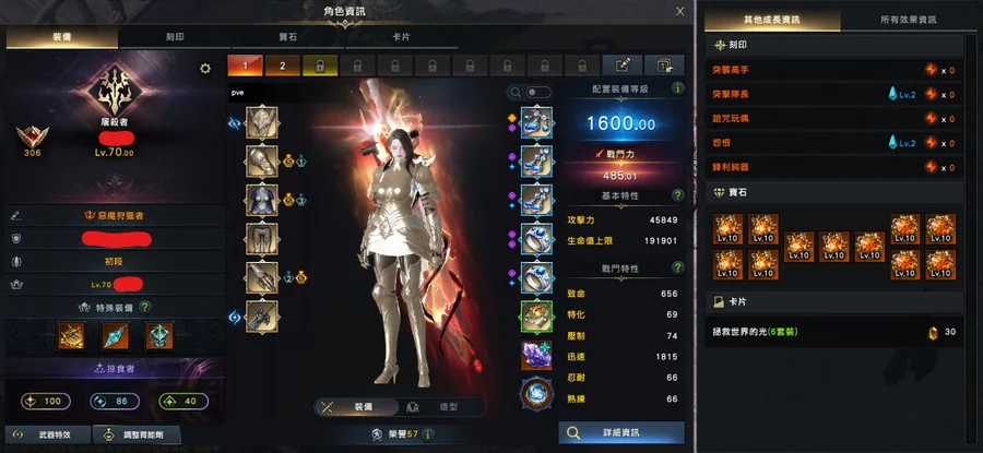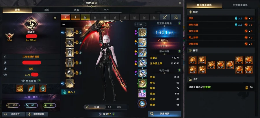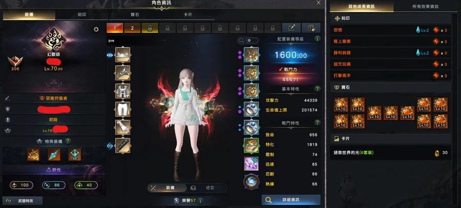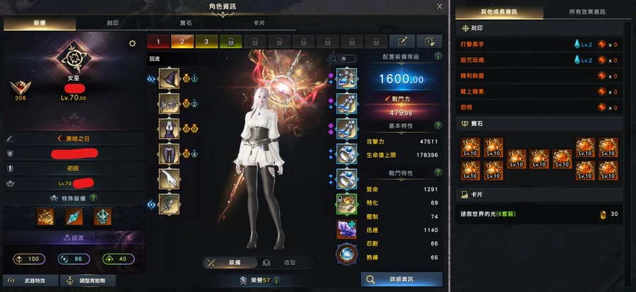 1600女狂(捕蝕):全身防具紫品/武器品100/1套10等寶石/石頭77/狗糧300W