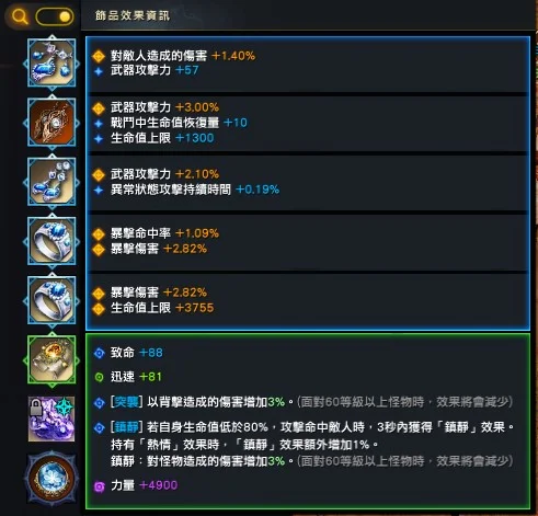T4手環: 迅速64 致命112 爆級命中5%/爆擊傷害6.8%