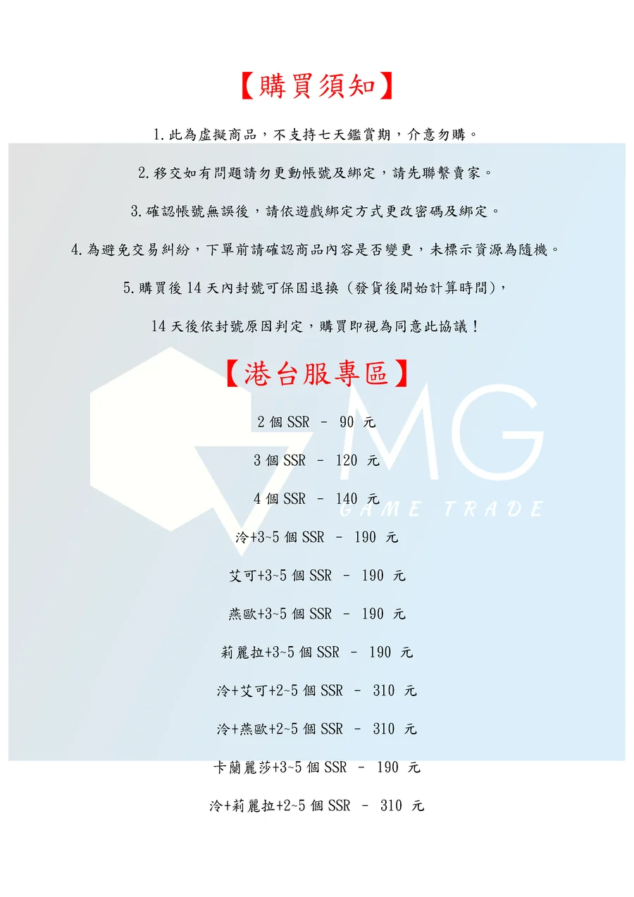 4.為避免交易糾紛,下單前請確認商品內容是否變更,未標示資源為隨機。