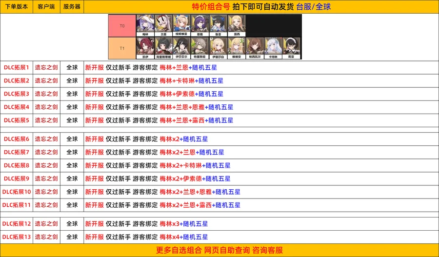 全 8591 首家 失落之劍初始LostSword韓服國際服梅林蘭恩魯亞莫蒂甘娜維維安莫爾加茲自選開局組合初始石頭自抽號