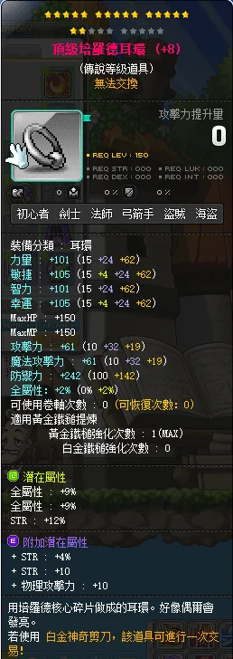 【%力頂培】職業:全職業星力:均 17C主潛:33%力頂戒、30%力(帶雙全屬)頂鍊、30%力(帶雙全屬)頂耳