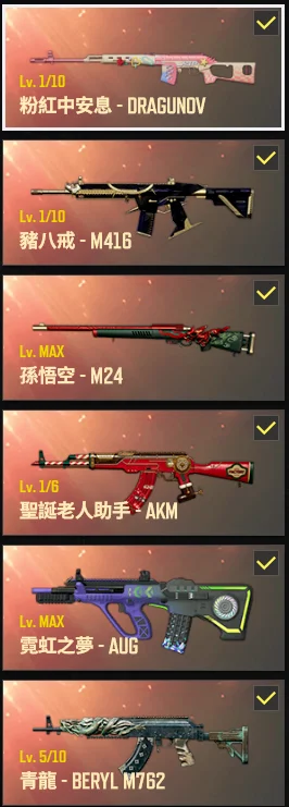 10等孫悟空M24 10等霓虹AUG 5等BERYL青龍 NewJean女團