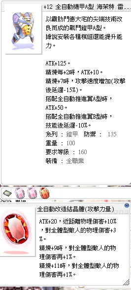 🍎+12全自動機甲A型 (攻擊力量/雙ATK) 海茉特卡全物理職業通用練功神物