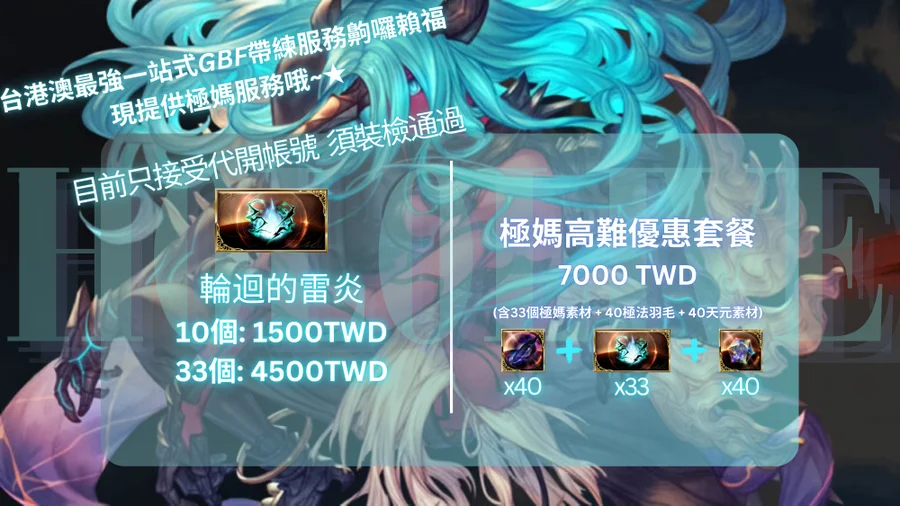 目前因為關卡難度極高,僅有代操方案請見諒。