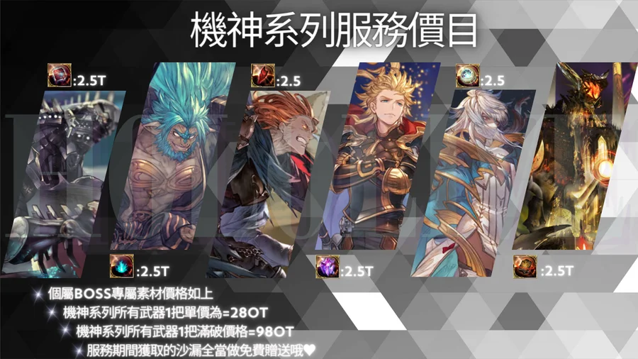 備註 : 只要老闆們裝備角色允許 我們會幫忙拿六屬性的特異點 免費不額外多收。