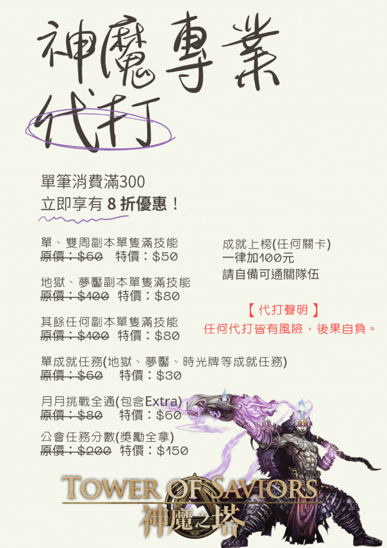 🔥神魔專業代打|單、雙周、地獄、夢魘副本🎮、成就🏆、公會任務👑