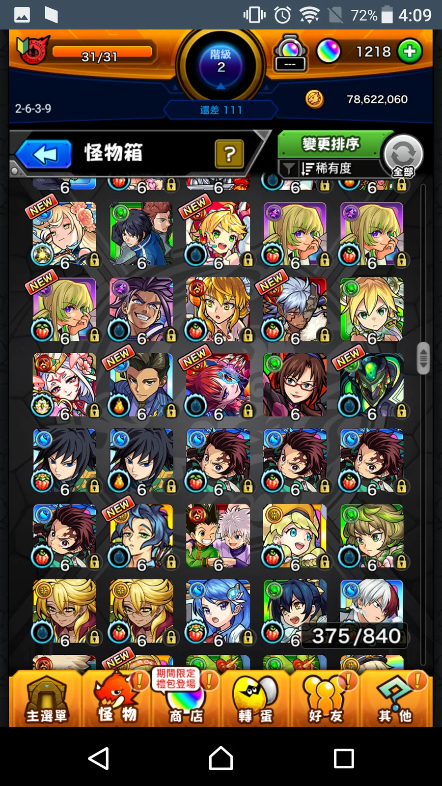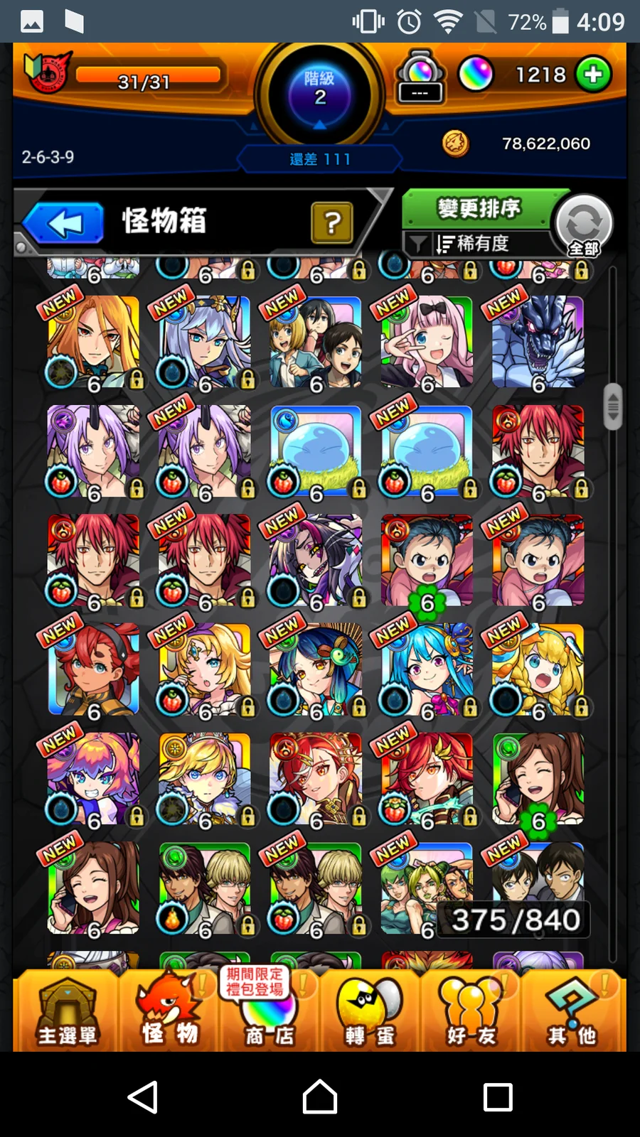 【初始號】正宗+八雲+路西法2+王者+瑪娜+麒麟兒+盧涅桑絲+潘朵拉+史萊姆1、2全+鬼滅