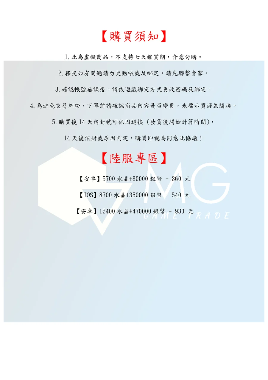 14天後依封號原因判定,購買即視為同意此協議!