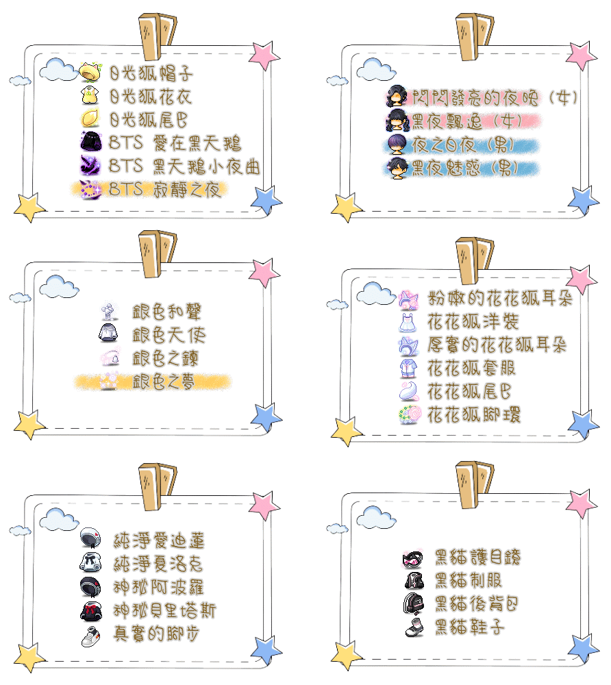 藍底=男裝.紅底=女裝.橘底=漂浮