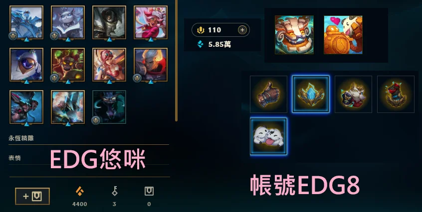 帳號EDG6→EDG悠咪、199T、七萬藍粉