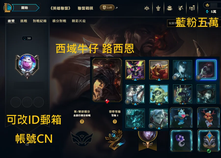 帳號CN→西域牛仔 路西恩、199T、五萬藍粉