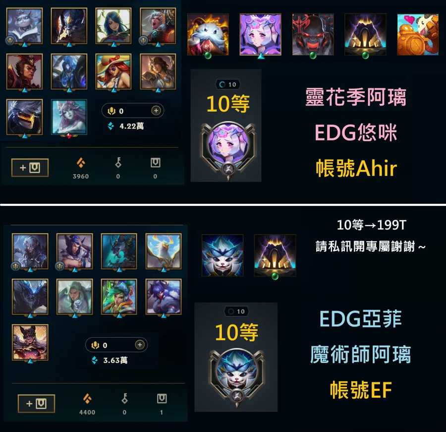 帳號EF→EDG亞菲利歐、魔術師阿璃、十等、99T