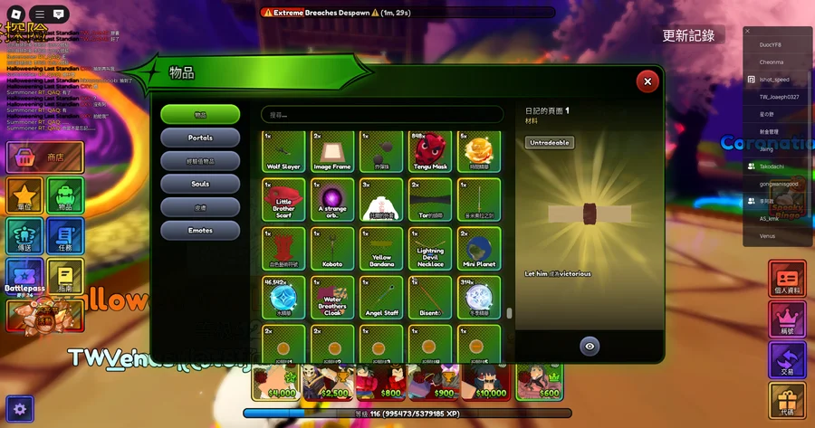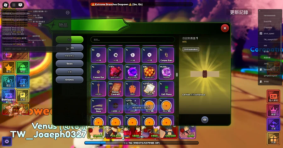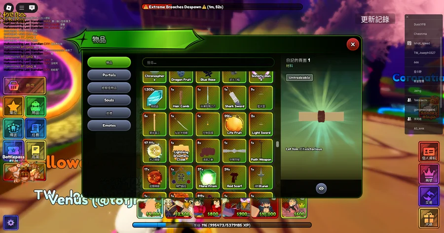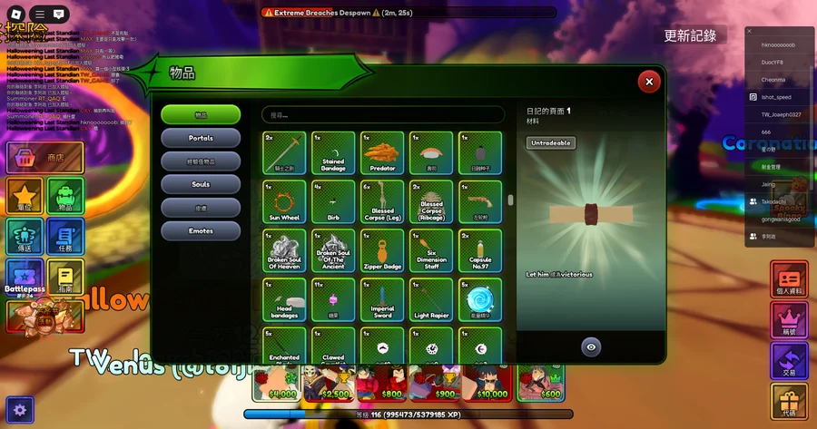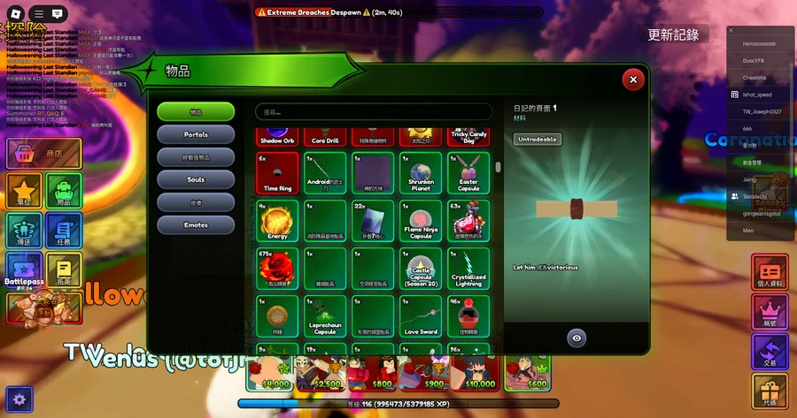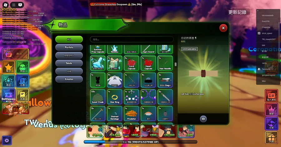 萬聖節膠囊1000 10塊 故障藥水一個2塊 需要都可以詢問 任何道具都有 新角色也都有 各式禮包
