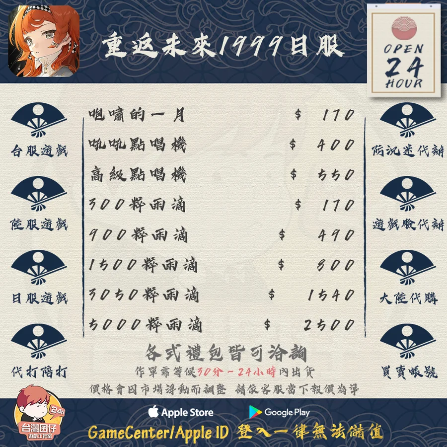 6️台灣囝仔台陸手遊代儲純粹為協助代儲服務,僅收取服務費,無賺取額外差價。