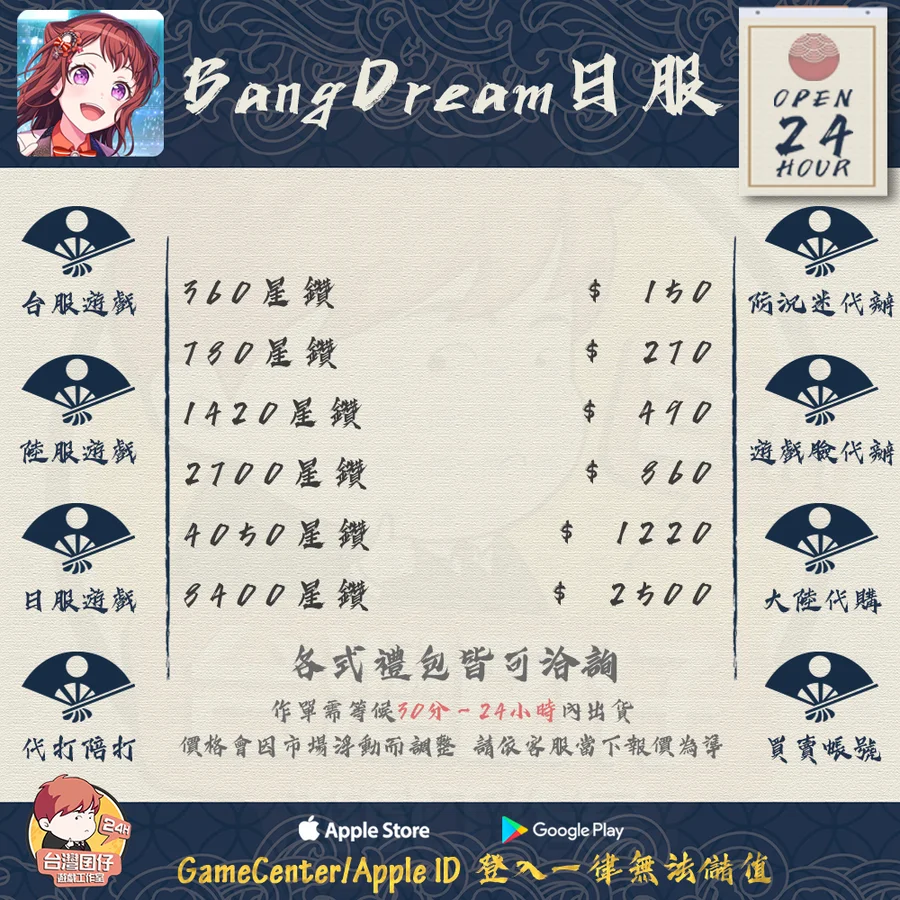 6️台灣囝仔台陸手遊代儲純粹為協助代儲服務,僅收取服務費,無賺取額外差價。