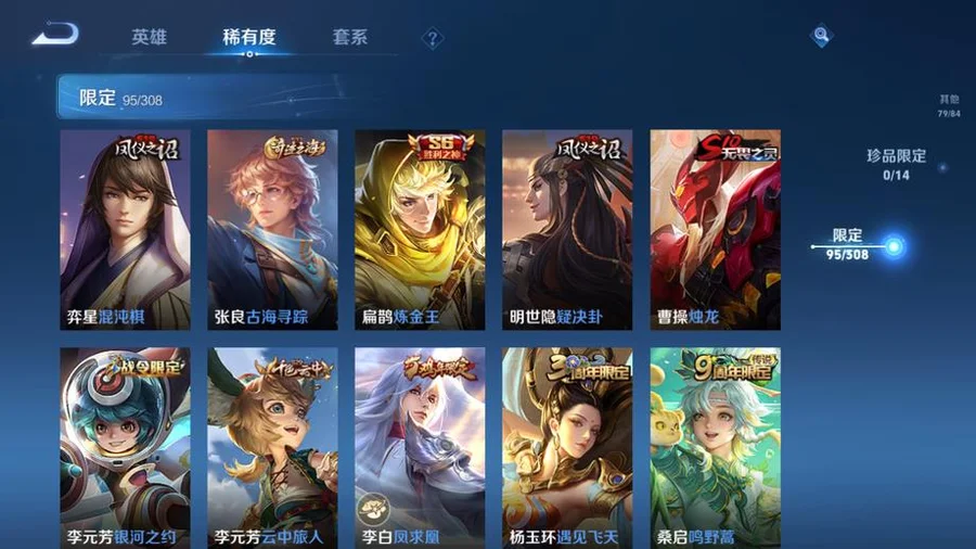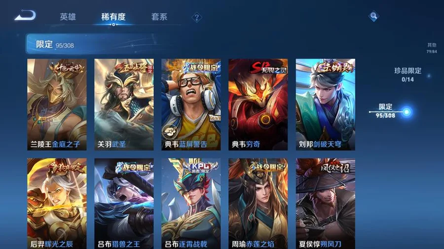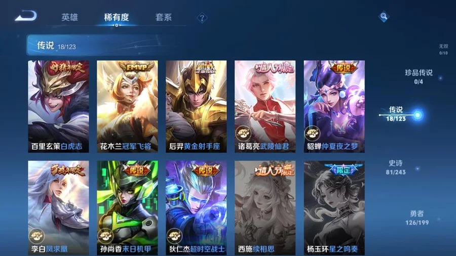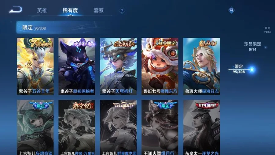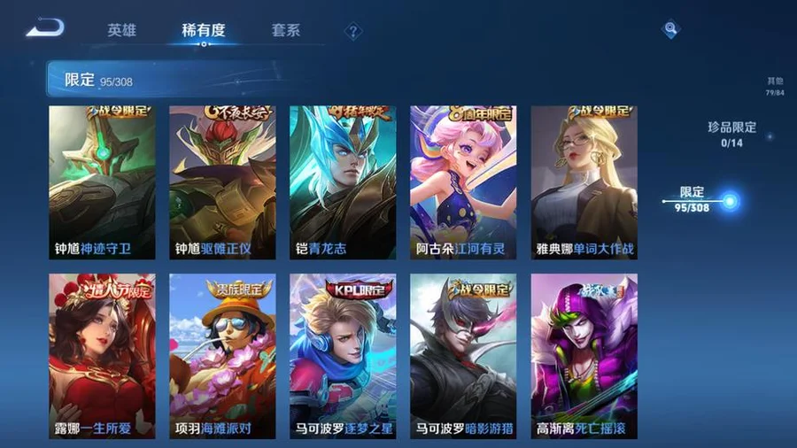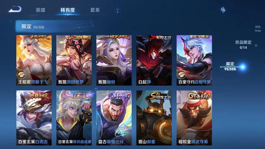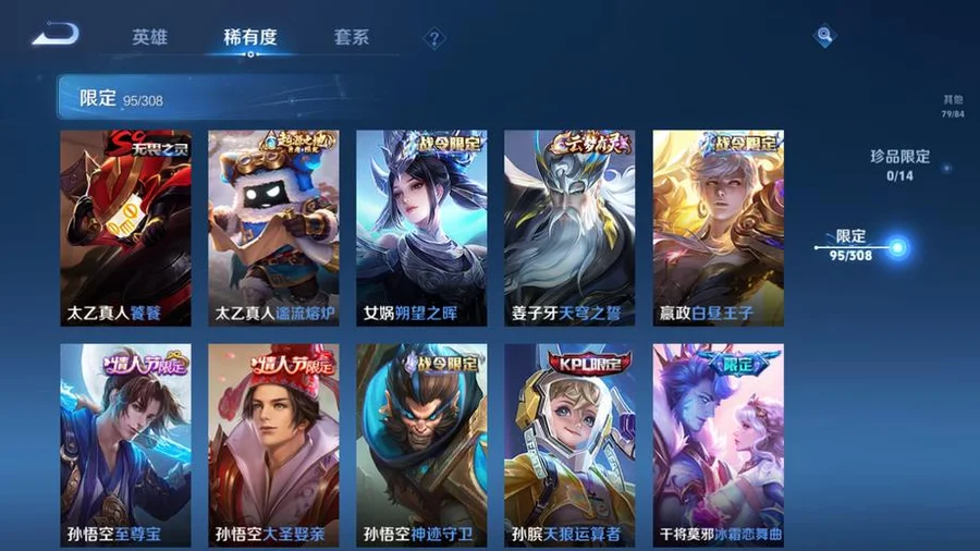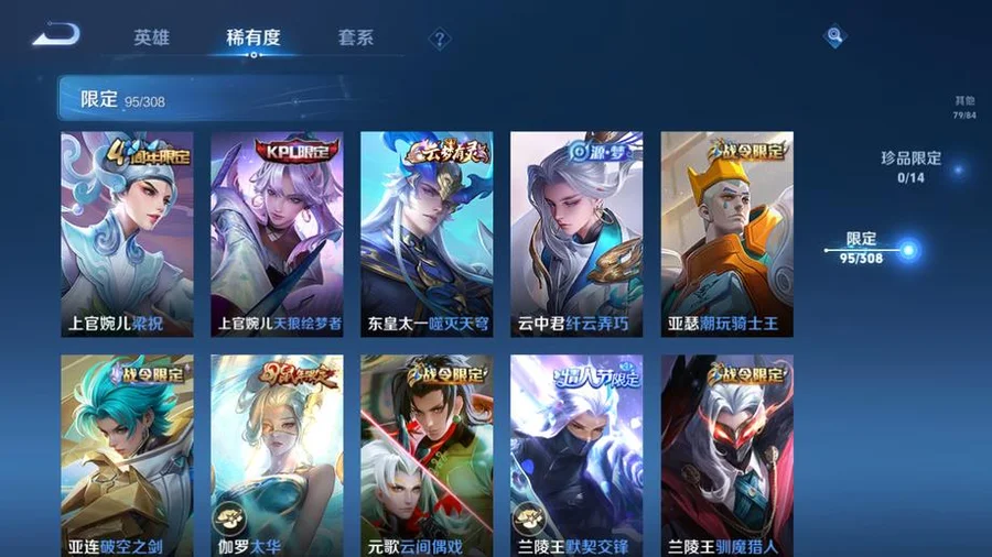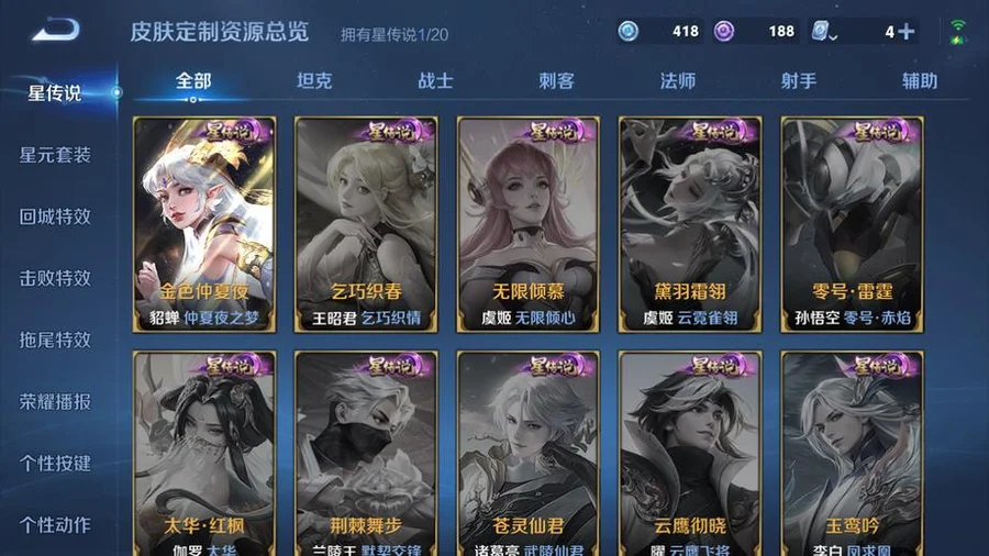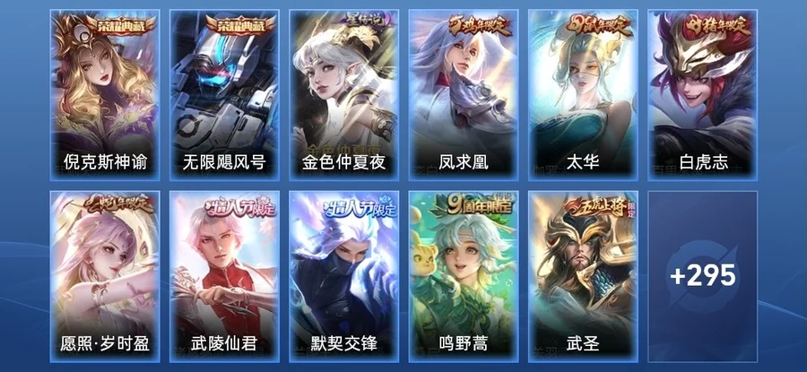 虞姬-願照·歲時盈,嬴政-暗夜貴公子,雲纓-幻光神槍,姜子牙-星夢巡禮,東皇太一-金福滿堂,西施-雪境奇遇,太乙真人-謐流熔爐,百里玄策-威尼斯狂歡,諸葛亮-黃金分割率,貂蟬-聖誕戀歌,典韋-鐵骨偃魂,趙懷真-太極少年,影-魅影綺裳,蒼-蒼林狼騎,劉禪-紳士熊喵,海月-幻泉霧影,沈夢溪-月團寄思,楊戩-天秀·啟明,百里守約-百相守夢,干將莫邪-霧都夜雨,馬可波羅-激情綠茵,暃-碧珀緋影,太乙真人-勁辣紅鍋,老夫子-百相守夢,呂布-末日機甲,安琪拉-心靈駭客,桑啟-鳴野蒿,瀾-賞金獵手,公孫離-無限星賞官,鬼谷子-五穀豐年,萊西奧-西部遊俠,大喬-白蛇,東皇太一-噬滅天穹,亞連-破空之劍,孫悟空-神蹟守衛,鎧-曙光守護者,盤古-敬我三分,姜子牙-天穹之誓,孫策-貓狗日記,廉頗-功夫炙烤,豬八戒-潮玩探月行,牛魔-西部大鏢客,劉邦-劍破天穹,程咬金-群星魔術團,蔡文姬-舞動綠茵,桑啟-畫中遊,鬼谷子-天穹祈燈,蒙犽-百解令,劉邦-德古拉伯爵,曹操-超能戰警,蘭陵王-暗隱獵獸者,阿古朵-江河有靈,魯班大師-乓乓大師,呂布-聖誕狂歡,鍾無豔-聚星閃耀,海月-王牌新星,張良-古海尋蹤,太乙真人-圓桌騎士,李元芳-妄想特派,魯班大師-探海日誌,姬小滿-零食大作戰,裴擒虎-擒濤扼浪,鍾馗-驅儺正儀,桑啟-海鹽詩旅,李元芳-雲中旅人,艾琳-女武神,楊戩-埃及法老,沈夢溪-大漠名商,蘭陵王-金庭之子,程咬金-無雙福將,雲纓-赤焰之纓,米萊狄-胡桃異想國,小喬-繽紛獨角獸,孫臏-天使之翼,程咬金-演武奪籌,盤古-重灌意志,張良-繽紛繪卷,達摩-星際陸戰隊,露娜-瓷語鑑心,張飛-亂世虎臣,夏侯惇-無限颶風號,蘭陵王-默契交鋒,花木蘭-默契交鋒,甄姬-冰雪圓舞曲,魯班七號-電玩小子,元歌-雲間偶戲,阿軻-節奏熱浪,趙雲-白執事,達摩-黃金獅子座,亞瑟-心靈戰警,牛魔-奔雷神使,楊戩-次元傲視,花木蘭-劍舞者,蘇烈-愛與和平,楊玉環-霓裳曲,劉備-萬事如意,劉禪-秘密基地,蒼-維京掠奪者,虞姬-啟明星使,狄仁傑-萬華元夜,亞瑟-潮玩騎士王,司空震-啟蟄,孫臏-天狼運算者,張良-黃金白羊座,虞姬-雲霓雀翎,狄仁傑-超時空戰士,瀾-孤獵,百里玄策-白虎志,雲中君-纖雲弄巧,馬超-倖存者,墨子-金屬風暴,蒙犽-狂想玩偶喵,沈夢溪-棒球奇才,盤古-創世神祝,露娜-緋紅之刃,裴擒虎-李小龍,關羽-武聖,花木蘭-兔女郎,老夫子-聖誕老人,姜子牙-熾熱元素使,雲中君-荷魯斯之眼,雅典娜-單詞大作戰,露娜-哥特玫瑰,鬼谷子-原初探秘者,百里玄策-原初追逐者,馬可波羅-暗影遊獵,鬼谷子-幻樂之宴,阿古朵-熊喵少女,沈夢溪-鯊炮海盜貓,不知火舞-魅語,劉備-漢昭烈帝,豬八戒-西部大鏢客,老夫子-醍醐杖,上官婉兒-天狼繪夢者,夏侯惇-乘風破浪,蒙恬-秩序獵龍將,盾山-圓桌騎士,趙雲-忍·炎影,高漸離-死亡搖滾,呂布-野性能量,鏡-冰刃幻境,明世隱-疑決卦,大喬-伊勢巫女,后羿-黃金射手座,孫臏-歸虛夢演,李元芳-銀河之約,甄姬-幽恆,達摩-大發明家,妲己-魅力維加斯,元歌-午夜歌劇院,廉頗-地獄巖魂,墨子-龍騎士,武則天-倪克斯神諭,后羿-阿爾法小隊,魯班七號-黑桃隊長,伽羅-太華,李白-鳳求凰,王昭君-鳳凰于飛,哪吒-次元突破,弈星-混沌棋,沈夢溪-星空之諾,狄仁傑-鷹眼統帥,蒙犽-歸虛夢演,蔡文姬-繁星吟遊,蘭陵王-馴魔獵人,魯班大師-歸虛夢演,程咬金-星際陸戰隊,白起-星夜王子,劉邦-聖殿之光,鬼谷子-阿摩司公爵,魯班七號-獅舞東方,上官婉兒-梁祝,夏侯惇-朔風刀,周瑜-赤蓮之焰,蘭陵王-隱刃,西施-歸虛夢演,盾山-御鑾,典韋-黃金武士,鍾馗-神蹟守衛,典韋-藍色畫面警告,曜-歸虛夢演,孫尚香-水果甜心,小喬-丁香結,項羽-帝國元帥,牛魔-御旌,女媧-朔望之暉,瑤-森,莊周-奇妙博物學,露娜-一生所愛,張飛-五福同心,孫悟空-大聖娶親,李白-千年之狐,蘇烈-堅韌之力,李元芳-逐浪之夏,韓信-白龍吟,李信-灼熱之刃,鎧-青龍志,干將莫邪-冰霜戀舞曲,嬴政-白晝王子,豬八戒-年年有餘,趙雲-未來紀元,張良-幽蘭居士,明世隱-虹雲星官,項羽-蒼穹之光,白起-白色死神,武則天-東方不敗,花木蘭-冠軍飛將,米萊狄-御霄,呂布-獵獸之王,嫦娥-露花倒影,韓信-街頭霸王,百里守約-特工魅影,曹操-死神來了,孫尚香-末日機甲,劉禪-天才門將,貂蟬-仲夏夜之夢,上官婉兒-修竹墨客,大喬-守護之力,盾山-極冰防禦線,項羽-科學大爆炸,楊玉環-遇見飛天,狂鐵-御獅,伽羅-花見巫女,亞瑟-死亡騎士,王昭君-偶像歌手,孫策-海之征途,達摩-拳王,司馬懿-魘語軍師,劉備-紐約教父,李白-敏銳之力,諸葛亮-掌控之力,夏侯惇-戰爭騎士,典韋-窮奇,嬴政-搖滾巨星,李元芳-特種部隊,劉禪-英喵野望,明世隱-占星師,孫尚香-沉穩之力,米萊狄-精準探案法,牛魔-制霸全明星,老夫子-功夫老勺,夢奇-美夢成真,宮本武藏-鬼劍武藏,羋月-重明,狂鐵-命運角鬥場,鍾無豔-生化警戒,關羽-天啟騎士,弈星-踏雪尋梅,王昭君-幻想奇妙夜,姜子牙-時尚教父,裴擒虎-街頭旋風,諸葛亮-武陵仙君,后羿-輝光之辰,曹操-燭龍,公孫離-花間舞,韓信-教廷特使,馬可波羅-逐夢之星,宮本武藏-霸王丸,周瑜-海軍大將,女媧-尼羅河女神,孫悟空-至尊寶,虞姬-加勒比小姐,阿軻-致命風華,甄姬-遊園驚夢,太乙真人-饕餮,后羿-精靈王,孫臏-未來旅行,扁鵲-化身博士,老夫子-潮流仙人,羋月-紅桃皇后,張良-一千零一夜,安琪拉-玩偶對對碰,百里守約-絕影神槍,鎧-龍域領主,鍾無豔-海灘麗影,白起-猙,魯班七號-福祿兄弟,哪吒-三太子,孫悟空-西部大鏢客,高漸離-金屬狂潮,王昭