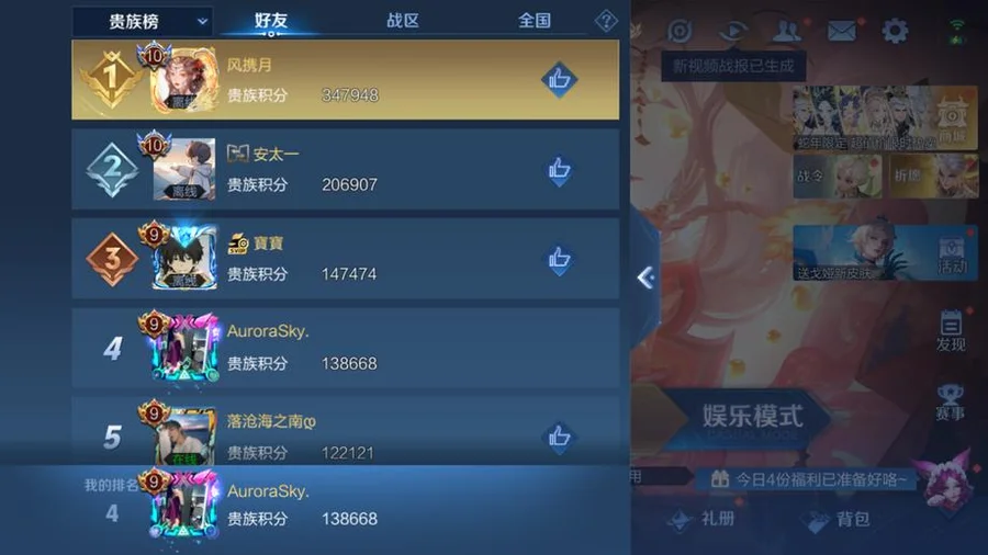 蘭陵王-默契交鋒,虞姬-啟明星使,百里玄策-白虎志,關羽-武聖,伽羅-太華,李白-鳳求凰,諸葛亮-武陵仙君