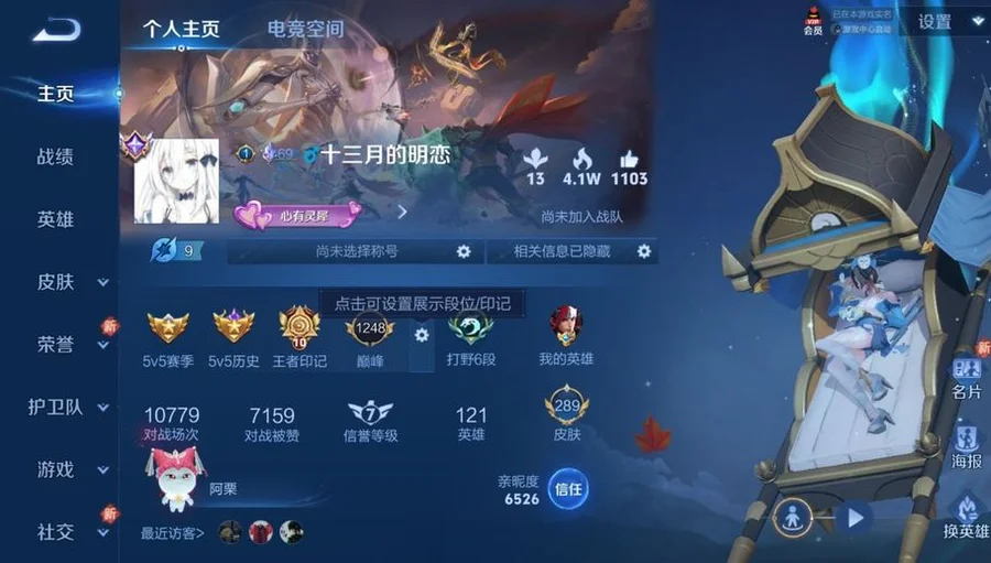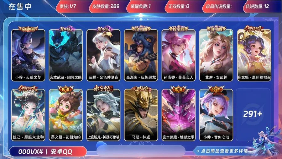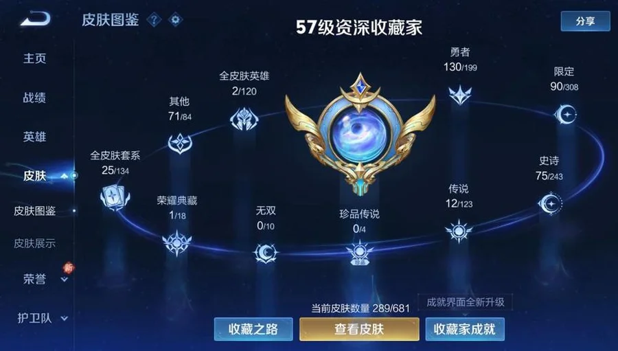 貴族等級:V7 造型價值:204164 榮耀典藏:1 無雙造型:0 傳說造型:12 史詩造型:74 英雄數量:120 造型數量:289 遊戲區服:安卓QQ307區