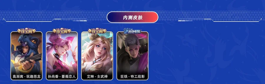 王昭君-永恆水手月亮,曜-山海·蒼雷引,小喬-山海·琳琅生,瑤-時之祈願,魯班七號-寅虎·瑞焰