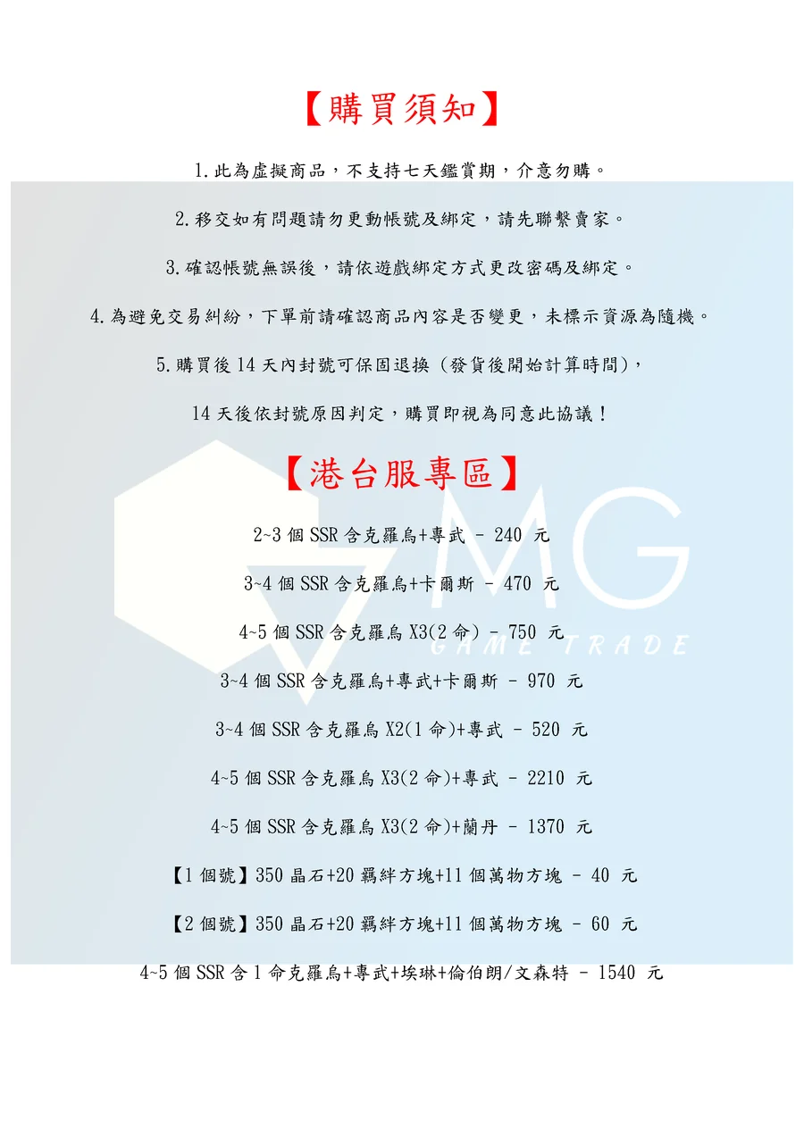 4.為避免交易糾紛,下單前請確認商品內容是否變更,未標示資源為隨機。