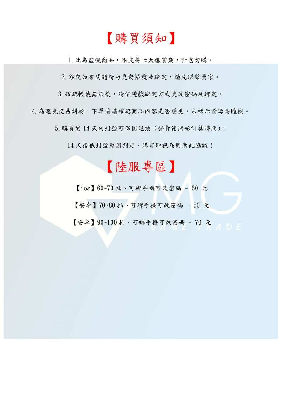 5.購買後14天內封號可保固退換 (發貨後開始計算時間),