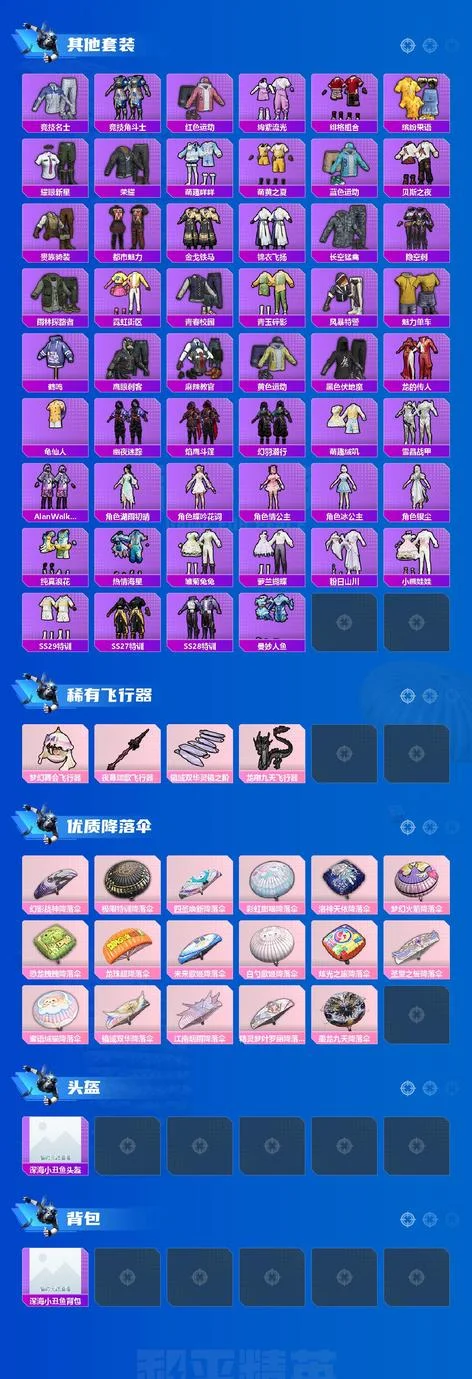夢幻舞會飛行器,夜幕頌歌飛行器,鏡域雙華-靈鏡之階,龍翔九天飛行器,幻影戰神降落傘,極限特訓降落傘,四聖煥新降落傘,彩虹甜喵降落傘,洛神天依降落傘,夢幻火箭降落傘,恐龍拽拽降落傘,龍珠超降落傘,未來歌姬降落傘,白勺歌姬降落傘,炫光之旅降落傘,聖堂之誓降落傘,蜜語絨貓降落傘,鏡域雙華降落傘,江南煙雨降落傘,精靈夢葉羅麗降落傘,墨龍九天降落傘
