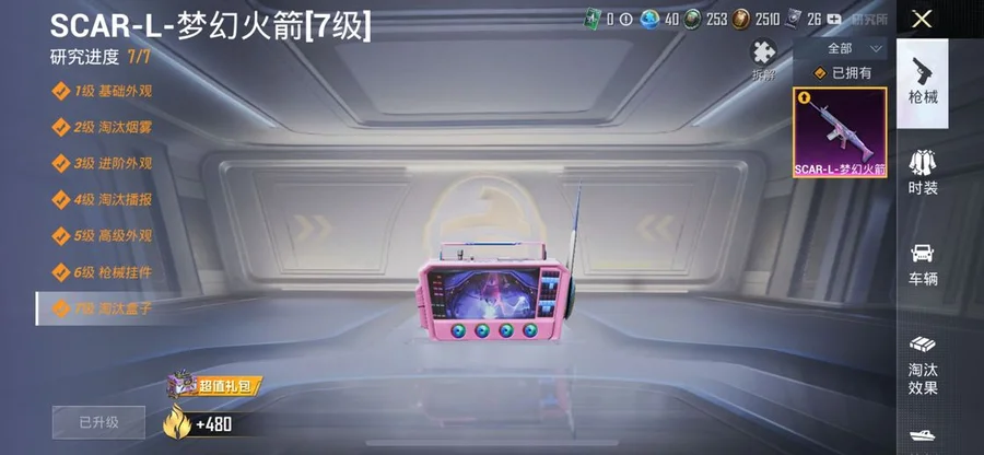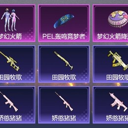 SCAR-L-夢幻火箭,AKM-彩虹符號,AKM-霓虹街區,AKM-奇異狩獵者,M16A4-九霄,M16A4-甜心亞夢,M16A4-幻世戰舞者,SCAR-L-玉兔迎春,M416-倉鼠灰灰,M416-夜燈,GROZA-黑色刀鋒,GROZA-田園牧歌,AUG-耀粉歌者,QBZ-彩虹符號,M762-拳皇97,M762-暗夜鎏金,Mk47-烏木金紋,AC-VAL-彩虹甜喵,AC-VAL-天降萌嘰,AC-VAL-甜心亞夢,蜜獾-天降萌嘰,蜜獾-嬌憨豬豬,Kar98K-紅色方程式,Kar98K-勇闖險境,M24-眾神之王,SKS-勇闖險境,VSS-田園牧歌,VSS-黑色刀鋒,Mini14-金鼠迎春,Mk14-烏木金紋,SLR-嬌憨豬豬,SLR-眾神之王,UZI-嬌憨豬豬,UZI-眾神之王,UMP45-春暖花開,Vector-田園牧歌,Vector-黑色刀鋒,湯姆遜-勇闖險境,MP5K-眾神之王,S686-生命誓言,S1897-炫彩節奏,S1897-勇闖險境,S12K-嬌憨豬豬,S12K-幻世戰舞者,S12K-華貴君王,DBS-甜心亞夢,SPAS-12-田園牧歌,M249-拳皇97,DP-28-甜心亞夢,DP-28-潮萌小黃鴨,MG3-幻世戰舞者,MG3-烏木金紋,P92-拳皇97,撬棍-快樂主宰,撬棍-幻世戰舞者,撬棍-傳奇偵探,平底鍋-繽紛糖果,平底鍋-炫紫旋律,平底鍋-眾神之王,平底鍋-黑色刀鋒,平底鍋-田園牧歌,平底鍋-拳皇97,平底鍋-勇闖險境,平底鍋-嬌憨豬豬,平底鍋-甜心亞夢,破片手榴彈-潮萌小黃鴨
