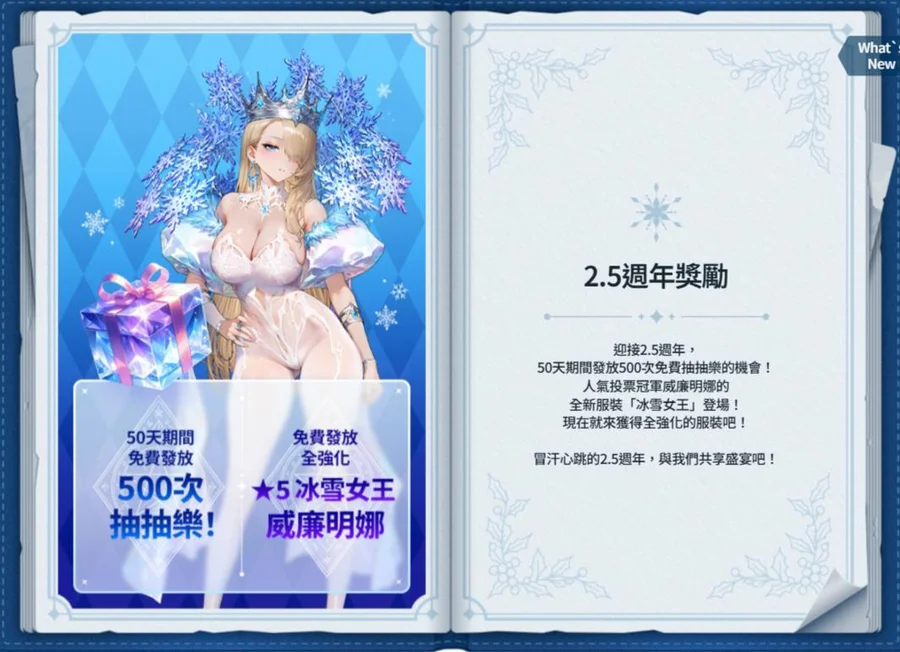全聯動服裝:無職轉生全套服裝+閃亂神樂全套服裝+哥布林殺手全套服裝 全限定服裝:【羅安(名人兔女郎)+伊柯利普斯(惡夢兔女郎)+西利亞(化妝舞會兔女郎)+泰瑞絲(海邊天使)+悠絲緹亞(泳池派對) +沙赫拉查德(泳池派對) 全互動服裝:【羅安(名人兔女郎) +墨菲亞(白日夢兔女郎)+泰瑞絲(保健室)+內布利斯(新進員工) +艾莉婕(代號O)+泳裝威廉明娜+泳裝席比亞】 (如果當期有出新的互動需等活動結束後兌換) 5滿破:【滿破泳裝泰瑞斯 + 滿破婚紗伊科利普斯 + 滿破泳裝達菲 + 滿破白日夢兔女郎 + 滿破流浪貓魯】 通用篩選卷:100-150張 女神之淚:70-110個 五星必中卷x7 (必中1.5周年以前服裝) 五星必中卷x3 (必中2周年以前服裝) 指定屬性五星必中卷x1 五星契約書:4-7張 大量五星UR裝備 必帶7隻人權輔助: 泰瑞絲(海邊天使簡稱泳泰)、海倫娜( B級偶像、簡稱B偶)、拉德爾(霍爾蒙克斯、簡稱鐵面)、黛安娜(未知的探究者)、泰瑞絲(保健室)、芮彼泰雅(婚紗)、 黎維塔(黑暗聖女) 簽到一年以上大量獎勵 (體力.金幣.改名卡.希望粉末.黃金線.材料) 新手通行證皆在(內含大量紫票.12張五星指定捲.大量資源) | 售價 | |