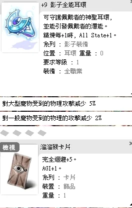 +9 影子全能耳環 對大型魔物受到物理攻擊-5%/一般魔物物理-2%