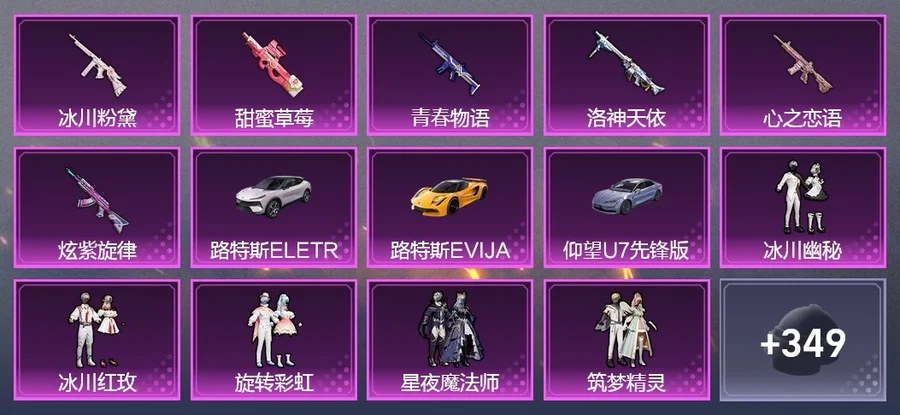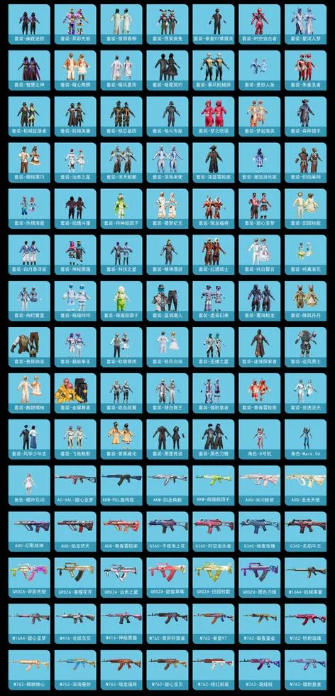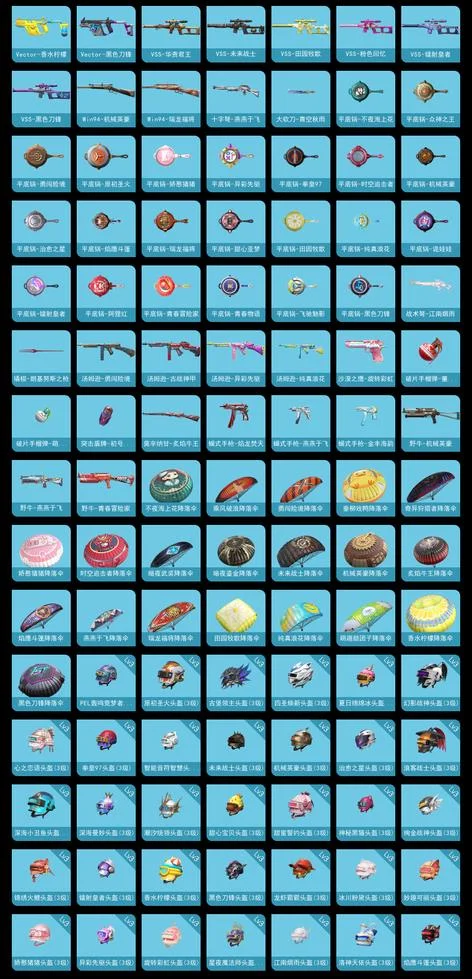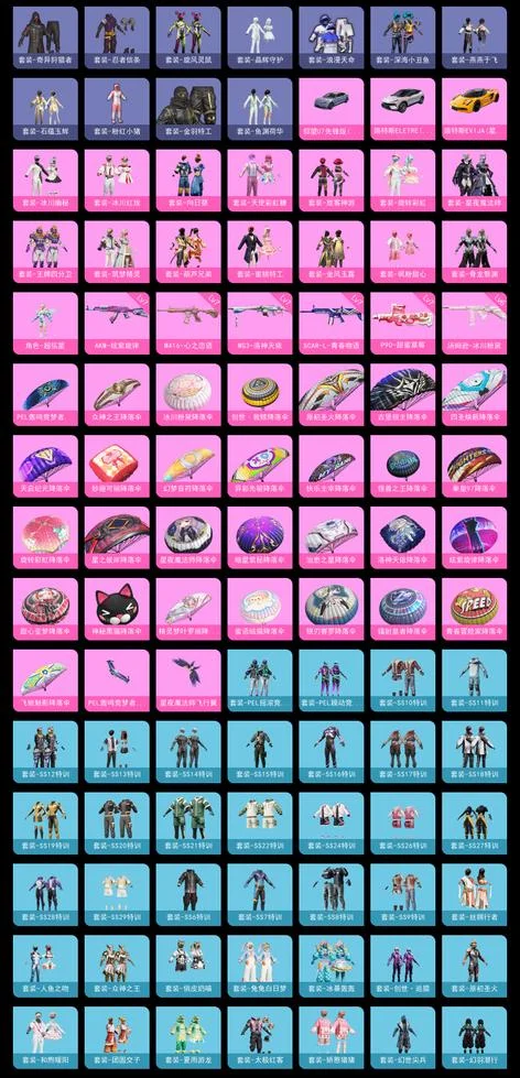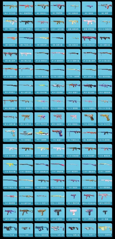 AKM-炫紫旋律,M416-心之戀語,MG3-洛神天依,SCAR-L-青春物語,P90-甜蜜草莓,湯姆遜-冰川粉黛,AC-VAL-甜心亞夢,AKM-PEL轟鳴競夢者,AKM-四聖煥新,AKM-萌趣顏糰子,AUG-冰川粉黛,AUG-聖光天使,AUG-幻影戰神,AUG-焰龍焚天,AUG-青春冒險家,G36C-不夜海上花,G36C-時空追擊者,G36C-暗夜玫瑰,G36C-炙焰牛王,GROZA-異彩先驅,GROZA-春暖花開,GROZA-治癒之星,GROZA-甜蜜草莓,GROZA-田園牧歌,GROZA-黑色刀鋒,M16A4-機械英豪,M16A4-甜心亞夢,M416-倉鼠灰灰,M416-神秘黑貓,M762-奇異狩獵者,M762-拳皇97,M762-暗夜鎏金,M762-槍炮玫瑰,M762-橘柚傾心,M762-深海曼妙,M762-瑞龍福將,M762-甜心寶貝,M762-緋紅前夜,M762-詭娃娃,M762-鐳射皇者,Mk47-百萬伏特,Mk47-青春冒險家,QBZ-原初聖火,QBZ-神秘黑貓,QBZ-純真浪花,QBZ-詭娃娃,QBZ-賽羅,QBZ-飛馳魅影,SCAR-L-未來戰士,SCAR-L-甜蜜誓約,SCAR-L-金風玉露,蜜獾-垂柳戲鴨,蜜獾-嬌憨豬豬,AA12-G-純真浪花,AMR-妙趣可麗,AWM-不夜海上花,AWM-垂柳戲鴨,AWM-焰鷹斗篷,AWM-純真浪花,DBS-時空追擊者,DBS-焰鷹斗篷,DBS-甜心亞夢,DBS-第五大道,DP-28-原初聖火,DP-28-旋轉彩虹,DP-28-焰鷹斗篷,DP-28-甜心亞夢,DP-28-甜心寶貝,DP-28-錦繡火鯉,DP-28-閃光銀龍,Kar98K-勇闖險境,Kar98K-古堡領主,Kar98K-飛馳魅影,M24-眾神之王,M24-奇異狩獵者,M24-未來戰士,M24-治癒之星,M24-香水檸檬,M249-四聖煥新,M249-拳皇97,M249-星之彼岸,M249-鐳射皇者,MG3-瑞龍福將,Mini14-原初聖火,Mini14-異彩先驅,Mini14-旋轉彩虹,Mini14-星夜魔法師,Mini14-海淵國主,Mini14-馬卡龍,Mk14-治癒之星,MP5K-眾神之王,MP5K-異彩先驅,MP5K-甜蜜誓約,MP5K-颯粉甜心,P18C-原初聖火,P18C-百萬伏特,P1911-綺夢青鸞,P90-築夢精靈,P90-飛馳魅影,P92-拳皇97,QBU-不夜海上花,QBU-青春冒險家,S12K-PEL轟鳴競夢者,S12K-冰川粉黛,S12K-華貴君王,S12K-垂柳戲鴨,S12K-嬌憨豬豬,S12K-機械英豪,S12K-瑞龍福將,S12K-童趣迷兔,S12K-香水檸檬,S1897-勇闖險境,S1897-星夜魔法師,S1897-神秘黑貓,S1897-精靈夢葉羅麗,S1897-鐳射皇者,S1897-飛馳魅影,S686-不夜海上花,S686-橘柚傾心,SKS-勇闖險境,SKS-時空追擊者,SKS-詭娃娃,SLR-眾神之王,SLR-嬌憨豬豬,SLR-甜蜜草莓,SLR-葫蘆兄弟,SPAS-12-燕燕於飛,SPAS-12-田園牧歌,TMP-9-霓彩節奏,UMP45-時空追擊者,UMP45-粉色回憶,UMP45-詭娃娃,UMP45-金玉無雙,UZI-眾神之王,UZI-古堡領主,UZI-嬌憨豬豬,UZI-幻影戰神,UZI-影襲,Vector-PEL轟鳴競夢者,Vector-創世·救贖,Vector-暗夜玫瑰,Vector-治癒之星,Vector-焰鷹斗篷,Vector-燕燕於飛,Vector-田園牧歌,Vector-香水檸檬,Vector-黑色刀鋒,VSS-華貴君王,VSS-未來戰士,VSS-田園牧歌,VSS-粉色回憶,VSS-鐳射皇者,VSS-黑色刀鋒,Win94-機械英豪,Win94-瑞龍福將,十字弩-燕燕於飛,大砍刀-青空秋雨,平底鍋-不夜海上花,平底鍋-眾神之王,平底鍋-勇闖險境,平底鍋-原初聖火,平底鍋-嬌憨豬豬,平底鍋-異彩先驅,平底鍋-拳皇97,平底鍋-時空追擊者,平底鍋-機械英豪,平底鍋-治癒之星,平底鍋-焰鷹斗篷,平底鍋-瑞龍福將,平底鍋-甜心亞夢,平底鍋-田園牧歌,平底鍋-純真浪花,平底鍋-詭娃娃,平底鍋-鐳射皇者,平底鍋-阿狸紅,平底鍋-青春冒險家,平底鍋-青春物語,平底鍋-飛馳魅影,平底鍋-黑色刀鋒,戰術弩-江南煙雨,撬棍-朗基努斯之槍,湯姆遜-勇闖險境,湯姆遜-古戰神甲,湯姆遜-異彩先驅,湯姆遜-純真浪花,沙漠之鷹-旋轉彩虹,破片手榴彈-童話森林,破片手榴彈-萌趣顏糰子,突擊盾牌-初號機 覺醒Ver.,莫辛納甘-炙焰牛王,蠍式手槍-焰龍焚天,蠍式手槍-燕燕於飛,蠍式手槍-金豐海韻,野牛-機械英豪,野牛-燕燕於飛,野牛-青春冒險家