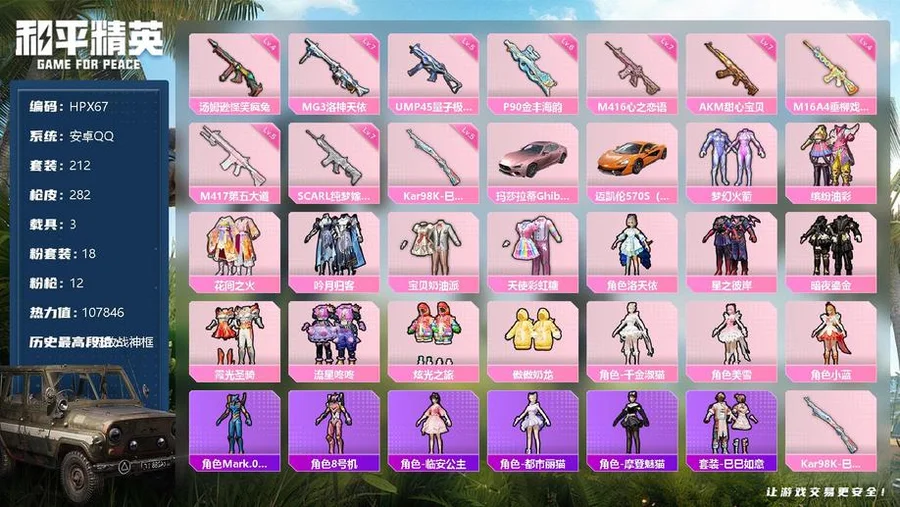 【商品標題】:安卓 手Q-18粉裝-12特效槍-3載具-熱力值-18印記-212套裝-282槍皮