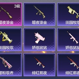 Kar98K-巳巳如意,DP-28-暗夜鎏金,M416-緋紅前夜,GROZA-田園牧歌,AUG-耀粉歌者,M762-緋紅前夜,蜜獾-嬌憨豬豬,VSS-田園牧歌,SLR-嬌憨豬豬,UZI-嬌憨豬豬,Vector-田園牧歌,湯姆遜-暗夜鎏金,S12K-嬌憨豬豬,SPAS-12-田園牧歌,Mk47-烏木金紋,AKM-彩虹符號,UMP45-生命誓言,Vector-生命誓言,M416-糯團青竹,AKM-灼熱熔岩,AC-VAL-烏木金紋,M416-藍色火焰,Mk14-烏木金紋,MG3-烏木金紋,SCAR-L-玉兔迎春,平底鍋-嬌憨豬豬,M16A4-幻世戰舞者,莫辛納甘-烏木金紋,MG3-幻世戰舞者,UZI-炫彩節奏,AKM-破曉戰魂,S12K-幻世戰舞者,AKM-虎虎生威,平底鍋-田園牧歌,平底鍋-光之冒險,平底鍋-緋紅前夜,M249-糯團青竹,PKM-啾咪啾咪,撬棍-幻世戰舞者,撬棍-緋紅前夜