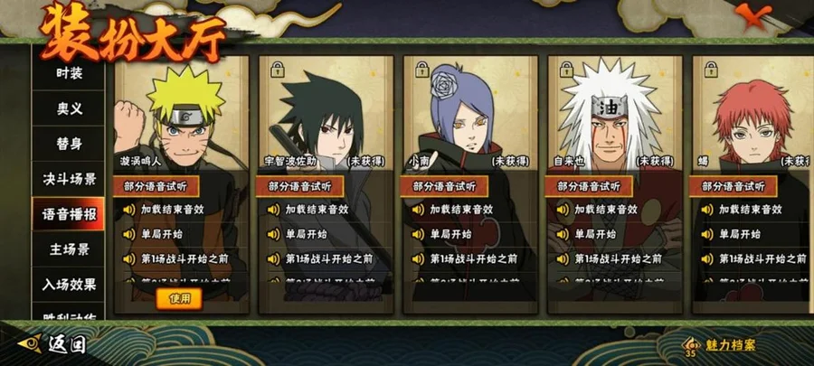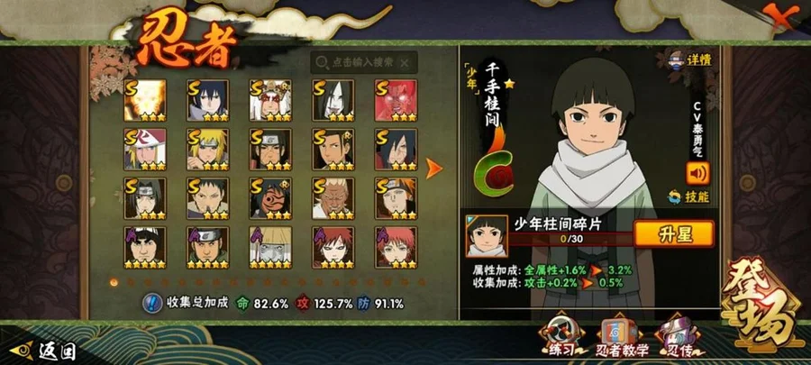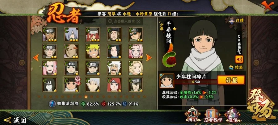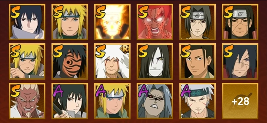 水門,穢土水門,大蛇丸,死門凱,創立柱間,穢土柱間,紅夜帶土,九喇嘛鳴人,永恆萬花筒佐助,穢土解斑,須佐鼬,舞之豪傑自來也,忍戰艾,青年艾,青年水門,百豪櫻,迪達拉,博人傳達魯伊,穢土迪達拉,曉大蛇丸,飛段,惡靈飛段,鬼鮫,凱,奇拉比,忍戰奇拉比,漂泊扉間,忍戰丁次,近松十人衛千代,忍戰寧次,疾風傳我愛羅,桃式顯現博人,仙人鳴人,九尾鳴人,阿斯瑪,鼬,萬花筒佐助,博人傳木葉丸,須佐佐助,疾風傳咒印佐助,斗篷兜,真容卡卡西,團藏,六代水影,青年長門