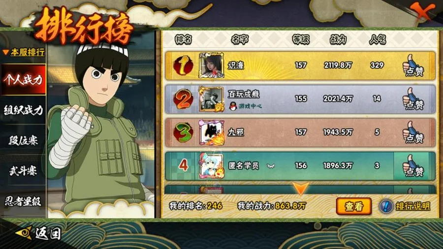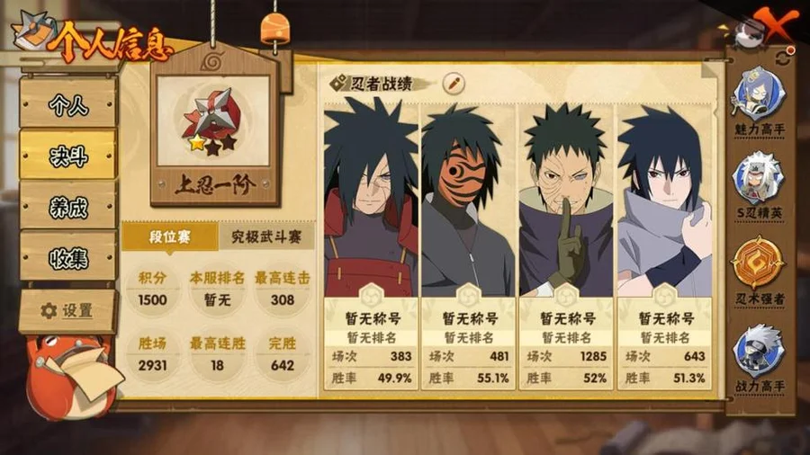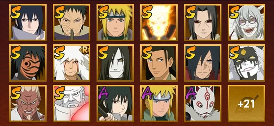水門,博人傳桃式,金式,大蛇丸,創立柱間,紅夜帶土,九喇嘛鳴人,永恆萬花筒佐助,穢土解斑,忍戰帶土,穢土鼬,仙人兜,舞之豪傑自來也,忍戰艾,青年艾,不緣,青年水門,穢土迪達拉,飛段,死司飛段,鬼鮫,博人傳黑土,凱,忍戰奇拉比,忍戰丁次,近松十人衛千代,忍戰寧次,忍者之路面具男,疾風傳我愛羅,桃式顯現博人,蠍,阿斯瑪,須佐佐助,最終章雛田,真容卡卡西,六代水影,青年長門,五代水影
