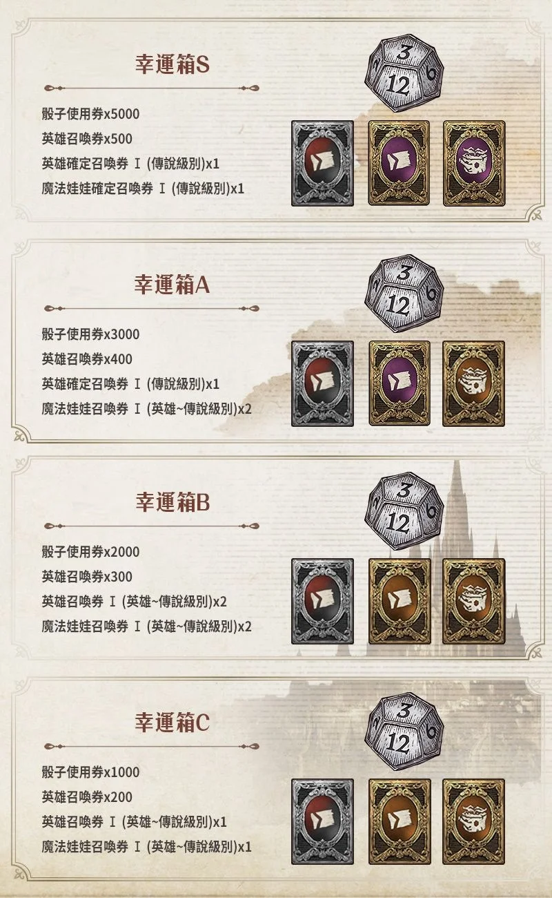 【巧兒🌸】幸運箱序號:骰子使用券+英雄召喚券+傳說英雄召喚券+傳說魔法娃娃召喚