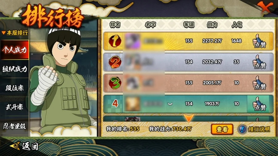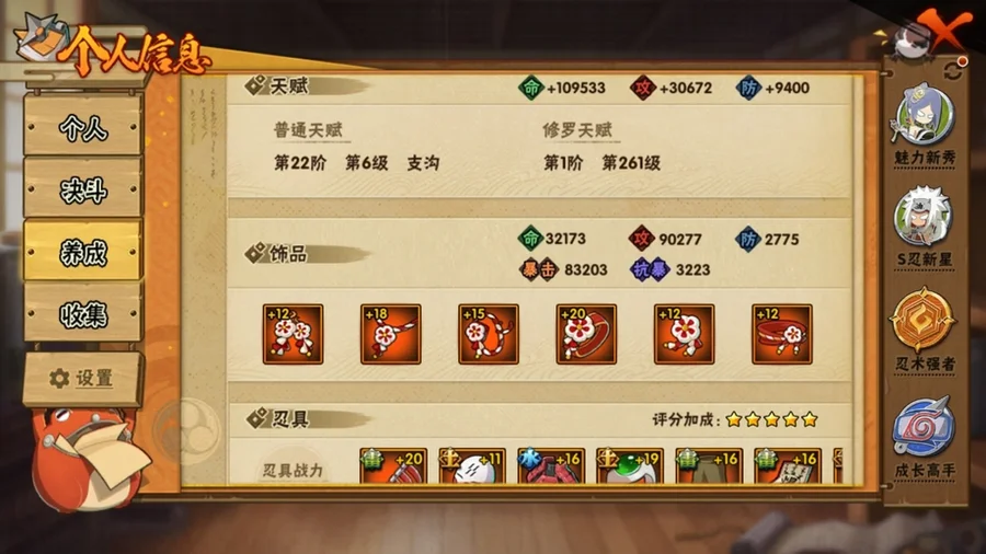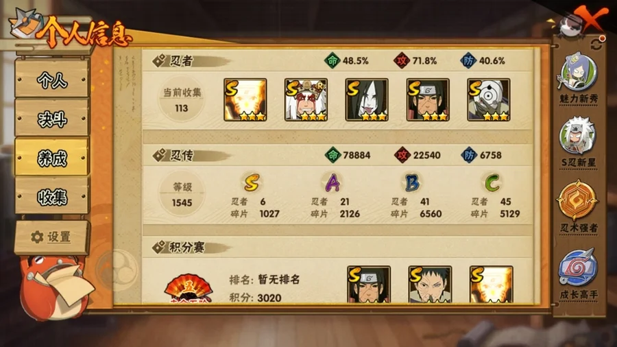 鼬,迪達拉,飛段,死司飛段,博人傳達魯伊,博人傳黑土,九喇嘛鳴人,舞之豪傑自來也,大蛇丸,穢土柱間,白面具,忍戰帶土,凱,阿斯瑪,鬼鮫,仙人鳴人,忍戰丁次,穢土阿斯瑪,青年水門,疾風傳我愛羅,五代水影,忍戰奇拉比,青年艾,青年長門,角都,曉大蛇丸,蠍