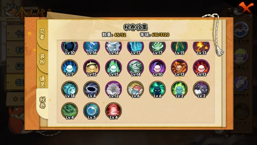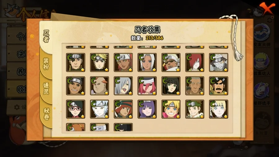 鬼鮫,阿斯瑪,飛段,疾風傳我愛羅,蠍,九尾鳴人,萬花筒佐助,須佐佐助,百豪櫻,忍戰丁次,忍戰寧次,忍戰李,最終章雛田,真容卡卡西,萬花筒卡卡西,穢土阿斯瑪,新春止水,青年水門,忍戰我愛羅,近松十人衛千代,奇拉比,九喇嘛鳴人,永恆萬花筒佐助,忍戰櫻,舞之豪傑自來也,大蛇丸,百豪綱手,死門凱,水門,穢土水門,穢土日斬,穢土斑,創立斑,白面具,忍戰帶土,二代土影,天道佩恩,穢土長門,仙人兜,金式,凱,青年艾,斗篷兜,不緣,青年長門,漂泊六道,地怨虞角都,曉大蛇丸,鼬,新春鼬,夏日鼬,穢土迪達拉,死司飛段,博人傳木葉丸,桃式顯現博人,博人傳達魯伊,六代水影,博人傳黑土,須佐卡卡西