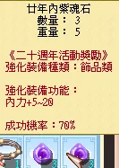 20周年絕版魂石,不會爆裝,可加煉化幸運符(成功率+10%)。