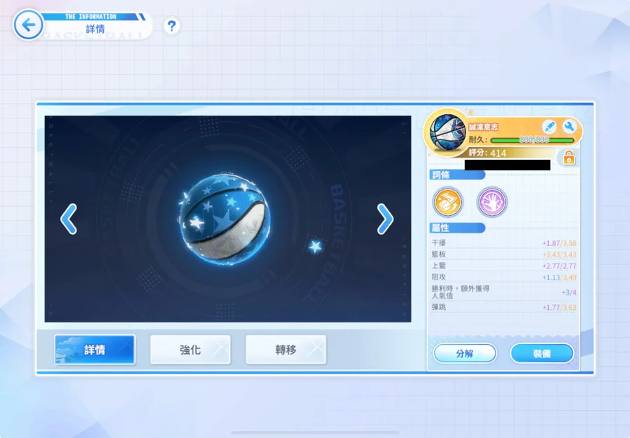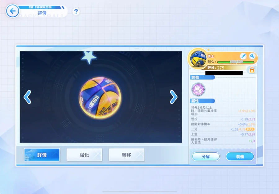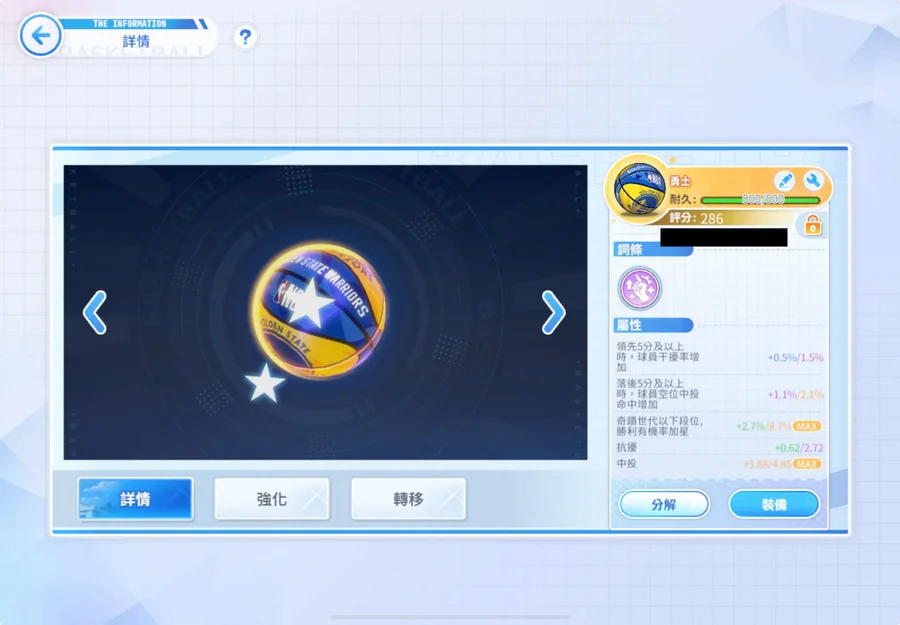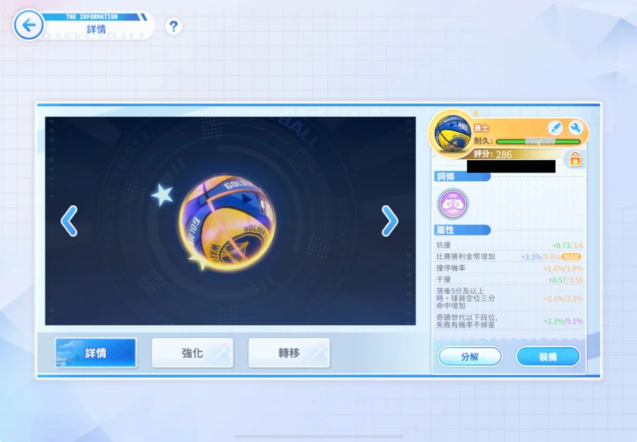 特性自選箱子X7、潛能抽取抵用券172、潛力總評分300、攻守兼具V、空中領域IV、投籃終結者V、團隊精神I、籃板爭搶I、無人跟防I、假投真傳I、防守領域I、專注I、希望之光I