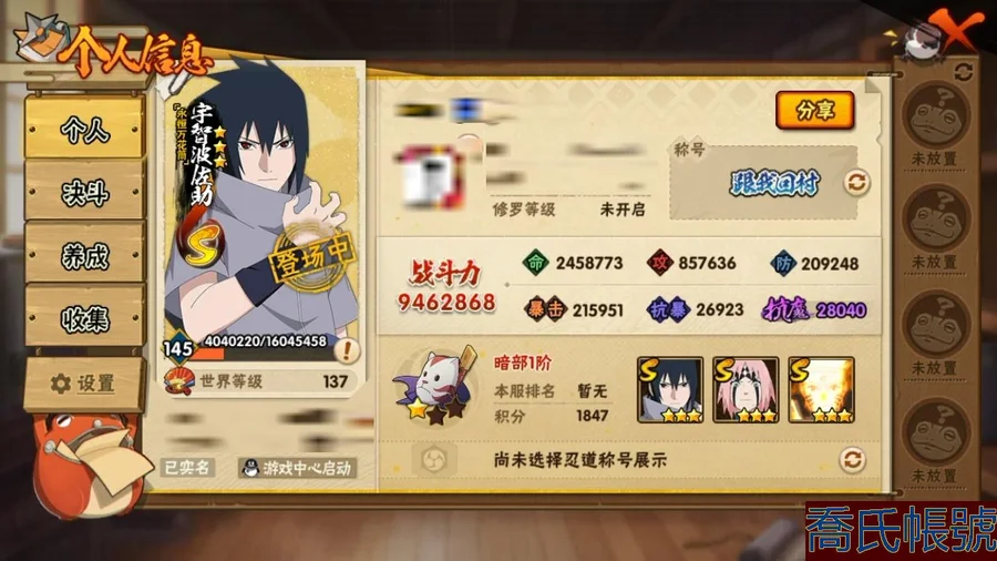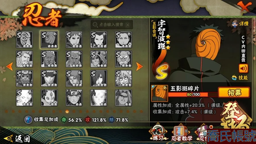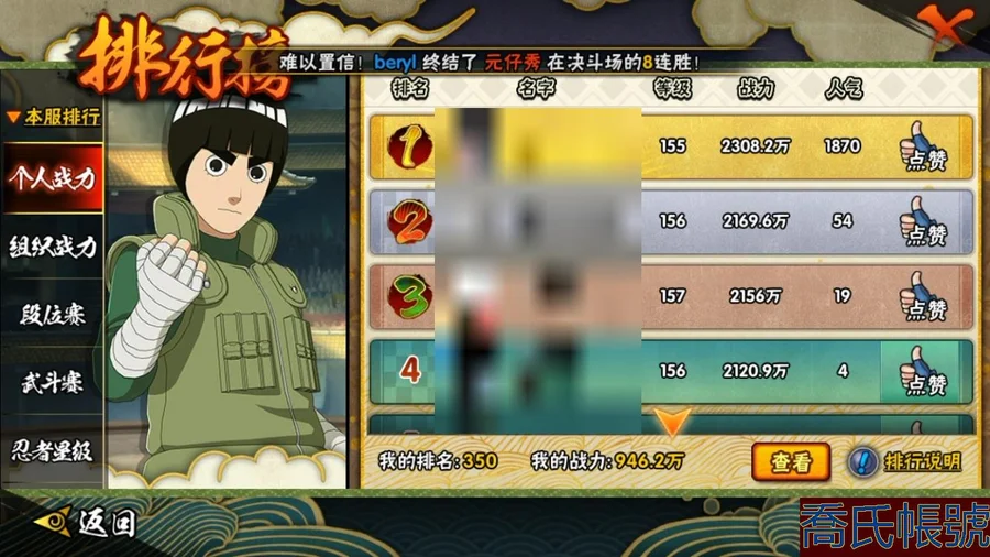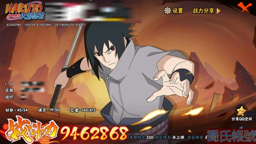 【OBHCRPR271442】戰鬥力:946W+;段位:暗部1階;本服排名:350;戰區排名:未上榜;VIP級;S忍18個;A忍28個;通靈獸19個;S忍:波風水門,天道佩恩,九喇嘛連結漩渦鳴人,木葉創立千手柱間,穢土轉生千手柱間,須佐能乎宇智波鼬,忍界大戰宇智波帶土,大筒木桃式,白面具宇智波斑,忍界大戰大野木,大筒木金式,舞之豪傑自來也,忍界大戰艾,穢土轉生解宇智波斑,永恆萬花筒宇智波佐助,忍界大戰春野櫻,紅夜之刃神秘面具男,九喇嘛連結波風水門;A忍:邁特凱,猿飛阿斯瑪,幹柿鬼鮫,疾風傳我愛羅,蠍,初始形態機械鳴人,萬花筒寫輪眼宇智波佐助,須佐能乎宇智波佐助,宇智波泉奈,忍界大戰秋道丁次,忍界大戰日向寧次,青年波風水門,近松十人衛千代,五代目水影照美冥,俠隱江湖照美冥,穢土轉生桃地再不斬,青年艾,俠隱江湖綱手,青年長門,漂泊浪客佩恩六道,漂泊浪客小南,新春限定大蛇丸,宇智波鼬,迪達拉,死司憑血飛段,桃式顯現漩渦博人,六代目水影長十郎,四代目土影黑土;通靈獸:忍犬,藍蛇,蛤蟆吉,忍龜,砂之守鶴,鐮鼬,猿魔,山椒魚,蜃,蛤蟆仙人,鮫鯊,蛤蟆健,烏鴉,蛞蝓,萬蛇,蛤蟆龍,熊貓,蛤蟆廣,夢貘;時裝:百戰宇智波鼬須佐能乎,百戰波風水門,蜀面豪傑舞之豪傑自來也,冷玉豪情綱手俠隱江湖,傳說的光芒波風水門,緋櫻綻放春野櫻百豪,飛瀑流泉長十郎六代目水影,龍的傳人李洛克截拳宗師,熊貓少女天天峨眉宗師,血霧怪人幹柿鬼鮫;【640】【蘋果QQ】200忍法帖已買下下週出五影 熊貓萬蛇