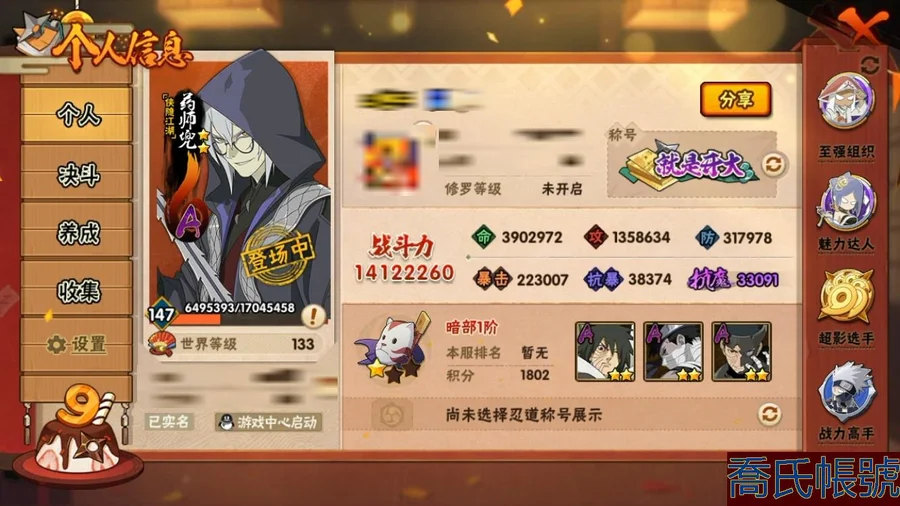 【OBHCRPR749142】戰鬥力:1412W+;段位:暗部1階;本服排名:23;戰區排名:未上榜;VIP15級;S忍18個;A忍45個;通靈獸25個;S忍:波風水門,暴怒第六尾漩渦鳴人,穢土轉生解宇智波斑,猿飛日斬,舞之豪傑自來也,須佐能乎旗木卡卡西,木葉創立千手柱間,傳說中的三忍自來也,須佐能乎宇智波鼬,須佐能乎宇智波止水,天道佩恩,大筒木桃式,最終章大筒木舍人,四代目風影羅砂,永恆萬花筒宇智波佐助,初代目風影烈鬥,綱手,忍界大戰艾;A忍:邁特凱,猿飛阿斯瑪,幹柿鬼鮫,蠍,旗木卡卡西,疾風傳我愛羅,飛段,桃式顯現漩渦博人,忍者之路神秘面具男,初始形態機械鳴人,須佐能乎宇智波佐助,俠隱江湖宇智波佐助,宇智波泉奈,百豪春野櫻,忍界大戰秋道丁次,忍界大戰日向寧次,忍界大戰李洛克,忍界大戰天天,最終章日向雛田,幻之真容旗木卡卡西,忍界大戰旗木卡卡西,穢土轉生猿飛阿斯瑪,新春限定波風水門,青年波風水門,新春限定我愛羅,夏日泳裝照美冥,穢土轉生桃地再不斬,忍界大戰土臺,俠隱江湖藥師兜,夏日泳裝小南,漂泊浪客小南,穢土轉生角都,緋流琥蠍,宇智波鼬,夏日限定宇智波鼬,迪達拉,穢土轉生迪達拉,新春限定迪達拉,死司憑血飛段,惡靈之影飛段,暴怒宇智波帶土,漂泊浪客宇智波帶土,俠隱江湖大野木,羈絆神農,四代目土影黑土;通靈獸:忍犬,藍蛇,蛤蟆吉,忍龜,鐮鼬,砂之守鶴,猿魔,山椒魚,蜃,蛞蝓,蛤蟆仙人,守鶴,鮫鯊,蛤蟆健,烏鴉,熊貓,蛤蟆龍,烏鴉夏日限定,蛤蟆廣,辛牙,萬蛇,夢貘,鷹;時裝:百戰佩恩天道,百戰宇智波鼬須佐能乎,蜀面豪傑舞之豪傑自來也,仲夏微光宇智波鼬夏日限定,太極靈韻日向花火武當宗師,終焉剎寂宇智波帶土漂泊浪客,純澈戀心日向雛田最終章,風之守護我愛羅忍界大戰,可愛睡衣漩渦鳴人,血霧怪人幹柿鬼鮫,緋櫻綻放春野櫻百豪,血紅辣椒旋渦玖辛奈少女,驕陽翠羽照美冥夏日泳裝,熊貓少女天天峨眉宗師;【727】【蘋果QQ】氪金2.6w 準24s 多198a 本期忍法帖已買 戰力指導已買 本服一組 在榜23