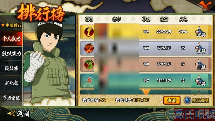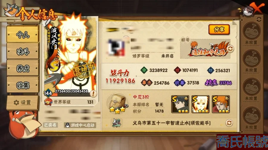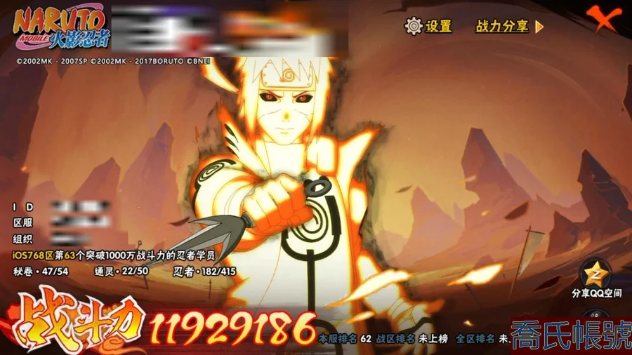 【OBHCRPR030042】戰鬥力:1192W+;段位:中忍3階;本服排名:62;戰區排名:未上榜;VIP13級;S忍18個;A忍32個;通靈獸22個;S忍:暴怒第六尾漩渦鳴人,波風水門,九喇嘛連結波風水門,舞之豪傑自來也,穢土轉生解宇智波斑,須佐能乎旗木卡卡西,超佩恩天道,傳說中的三忍自來也,須佐能乎宇智波鼬,須佐能乎宇智波止水,天道佩恩,大筒木桃式,死門邁特凱,最終章大筒木舍人,綱手,忍界大戰艾,穢土轉生波風水門,穢土轉生猿飛日斬;A忍:邁特凱,猿飛阿斯瑪,幹柿鬼鮫,疾風傳我愛羅,蠍,初始形態機械鳴人,萬花筒寫輪眼宇智波佐助,須佐能乎宇智波佐助,宇智波泉奈,忍界大戰秋道丁次,忍界大戰李洛克,最終章日向雛田,火影繼承人猿飛日斬,新春限定波風水門,青年波風水門,近松十人衛千代,五代目水影照美冥,穢土轉生桃地再不斬,青年艾,忍界大戰土臺,青年長門,漂泊浪客小南,穢土轉生角都,緋流琥蠍,宇智波鼬,夏日限定宇智波鼬,迪達拉,飛段,死司憑血飛段,漂泊浪客宇智波帶土,羈絆神農,桃式顯現漩渦博人;通靈獸:忍犬,藍蛇,蛤蟆吉,砂之守鶴,忍龜,鐮鼬,猿魔,蛞蝓,山椒魚,蜃,蛤蟆仙人,鮫鯊,蛤蟆健,辛牙,烏鴉,熊貓,蛤蟆龍,怒鬼爪,,蛤蟆廣,夢貘;時裝:百戰佩恩天道,百戰宇智波鼬須佐能乎,百戰波風水門,蜀面豪傑舞之豪傑自來也,太極靈韻日向花火武當宗師,純澈戀心日向雛田最終章,可愛睡衣漩渦鳴人,菁英忍者旗木卡卡西少年,血霧怪人幹柿鬼鮫,命定之戰宇智波佐助疾風傳,血紅辣椒旋渦玖辛奈少女,烈土霓裳黑土四代目土影,睿勇新星千手扉間少年,緋櫻綻放春野櫻百豪,熊貓少女天天峨眉宗師,純白之心白,水之妖姬照美冥五代目水影;【蘋果QQ】【蘋果QQ】馬上v14 號上還有1500點卷加上限時能有4500點卷 抽數還有不少 2組戰力 開了不久的新區 剩下的自己看吧