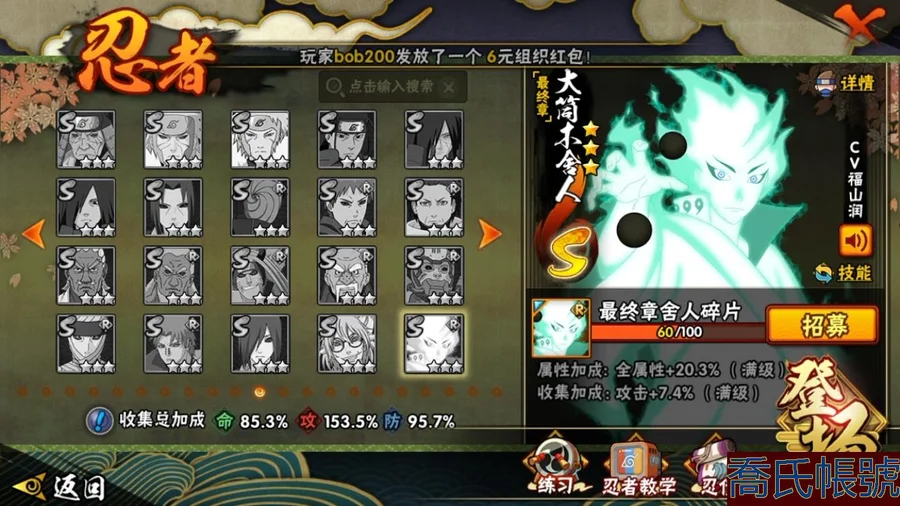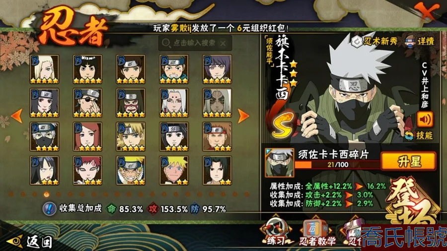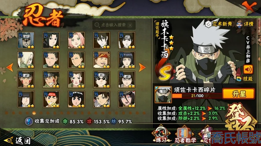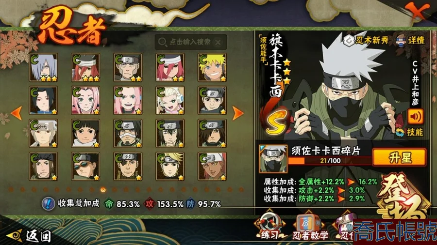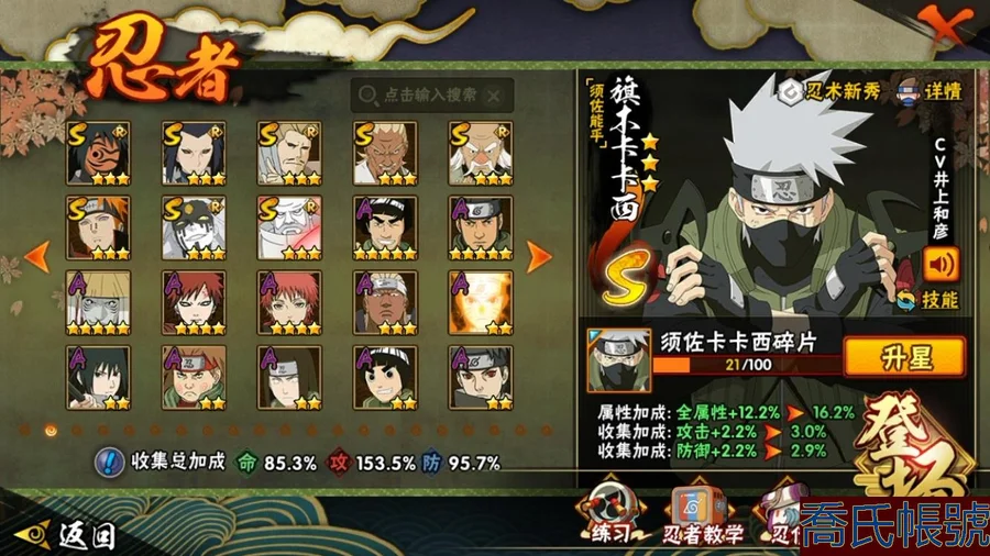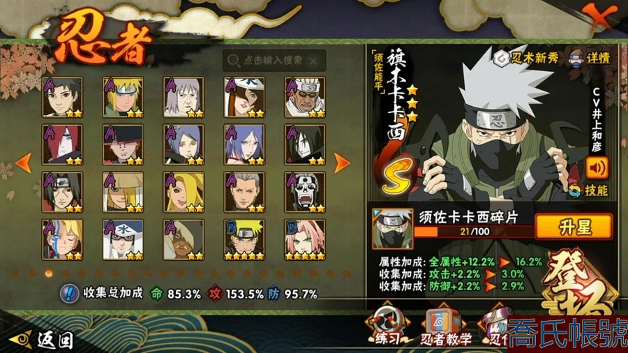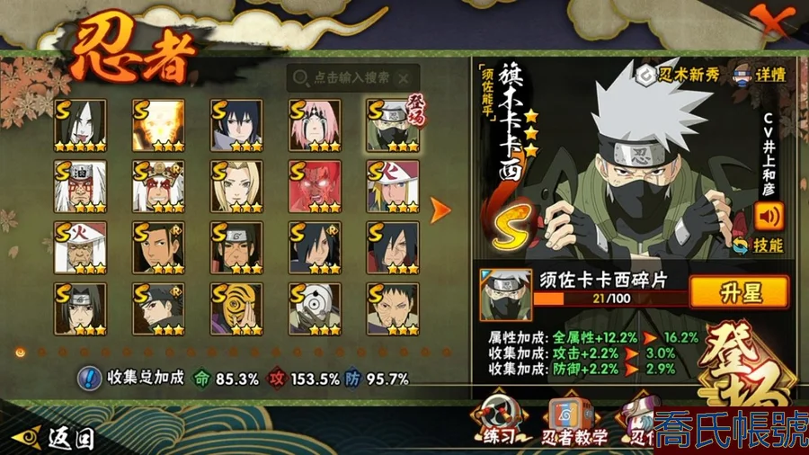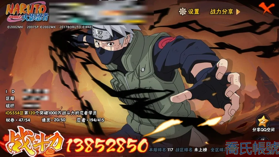 【OBHCRPR704642】戰鬥力:1385W+;段位:見習2階;本服排名:117;戰區排名:未上榜;VIP級;S忍28個;A忍30個;通靈獸20個;S忍:波風水門,穢土轉生三代目風影,九喇嘛連結漩渦鳴人,須佐能乎宇智波止水,死門邁特凱,須佐能乎宇智波鼬,大蛇丸,神秘面具男,白面具宇智波斑,猿飛日斬,穢土轉生解宇智波斑,二代目水影鬼燈幻月,大筒木桃式,忍界大戰大野木,大筒木金式,忍界大戰春野櫻,紅夜之刃神秘面具男,天道佩恩,綱手,木葉創立千手柱間,穢土轉生千手柱間,木葉創立宇智波斑,仙人模式自來也,須佐能乎旗木卡卡西,舞之豪傑自來也,永恆萬花筒宇智波佐助,忍界大戰宇智波帶土,忍界大戰艾;A忍:邁特凱,猿飛阿斯瑪,幹柿鬼鮫,疾風傳我愛羅,蠍,青年艾,九尾查克拉漩渦鳴人,須佐能乎宇智波佐助,忍界大戰秋道丁次,忍界大戰日向寧次,忍界大戰李洛克,宇智波止水,新春限定宇智波止水,青年波風水門,近松十人衛千代,五代目水影照美冥,奇拉比,青年長門,漂泊浪客佩恩六道,小南,漂泊浪客小南,曉大蛇丸,宇智波鼬,迪達拉,穢土轉生迪達拉,飛段,死司憑血飛段,桃式顯現漩渦博人,六代目水影長十郎,五代目雷影達魯伊;通靈獸:忍犬,藍蛇,砂之守鶴,蛤蟆吉,忍龜,鐮鼬,猿魔,山椒魚,蜃,蛤蟆仙人,鮫鯊,蛤蟆健,烏鴉,蛤蟆龍,蛤蟆廣,蛞蝓,夢貘,熊貓,萬蛇;時裝:百戰波風水門,百戰大蛇丸,蜀面豪傑舞之豪傑自來也,百戰佩恩天道,傳說的光芒波風水門,剎那的藝術迪達拉,飛瀑流泉長十郎六代目水影,水之妖姬照美冥五代目水影,龍的傳人李洛克截拳宗師,睿勇新星千手扉間少年,熊貓少女天天峨眉宗師,血霧怪人幹柿鬼鮫;【554】【蘋果QQ】